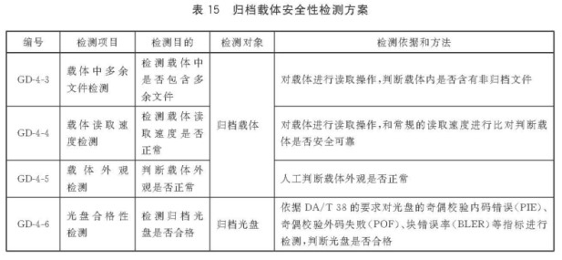 歸檔載體安全性檢測(cè)方案如表15所示。