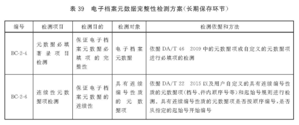 電子檔案元數(shù)據(jù)完整性檢測(cè)方案如表39所示。