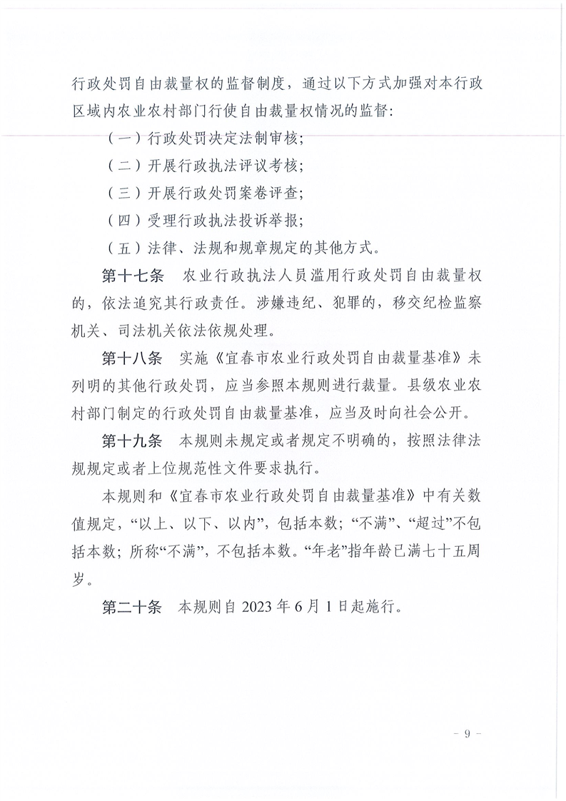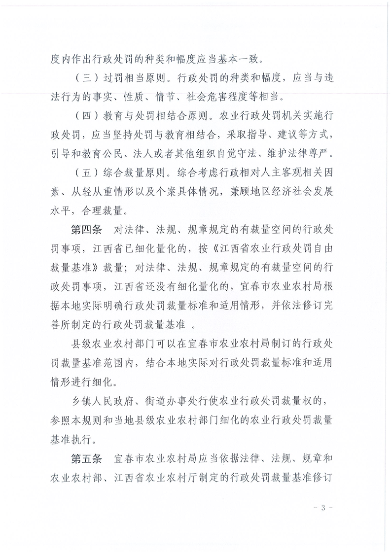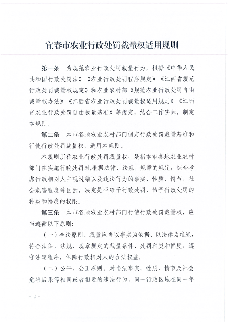 (轉載)宜農字〔2023〕20號宜春市農業農村局關于印發《宜春市農業行政處罰裁量權適用規則》和《宜春市農業行政處罰自由裁量基準》的通知
