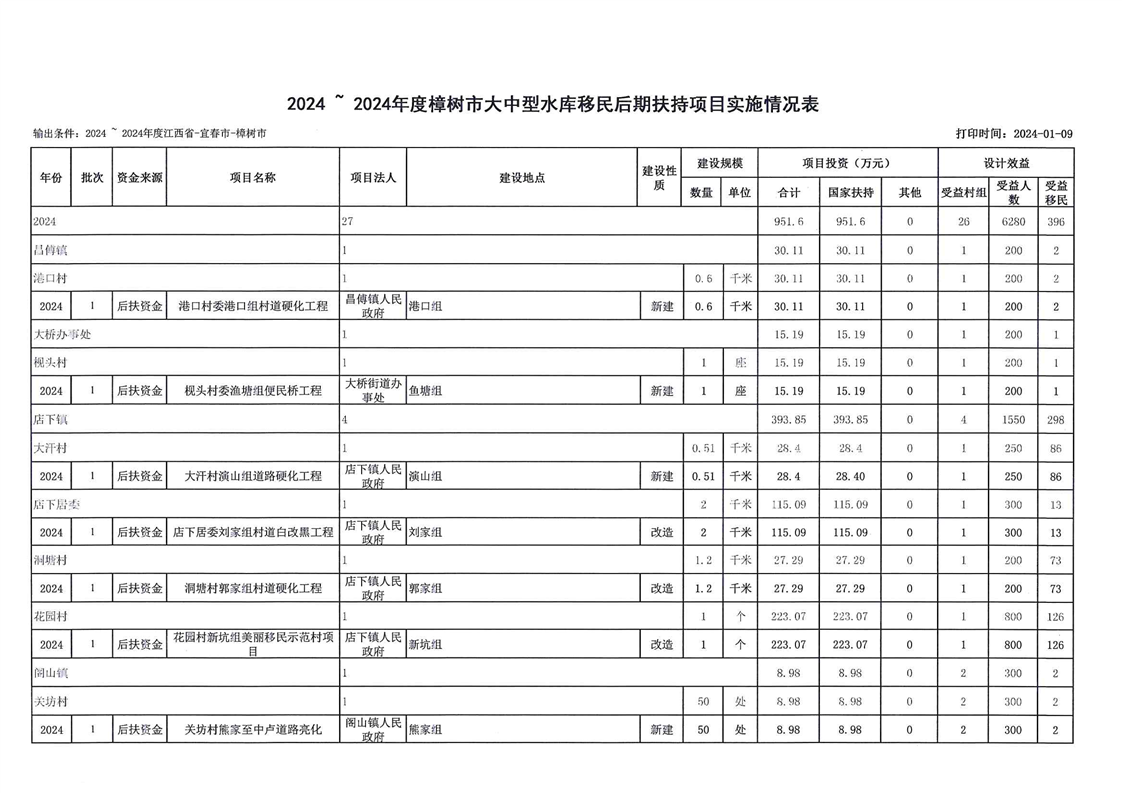 關(guān)于下達(dá)樟樹市2024年度大中型水庫移民后期扶持第一批資金項(xiàng)目計劃的批復(fù)