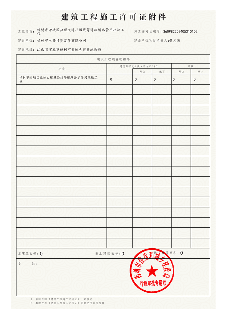 樟樹市老城區鹽城大道及沿線等道路排水管網改造工程(一期)建筑工程施工許可證