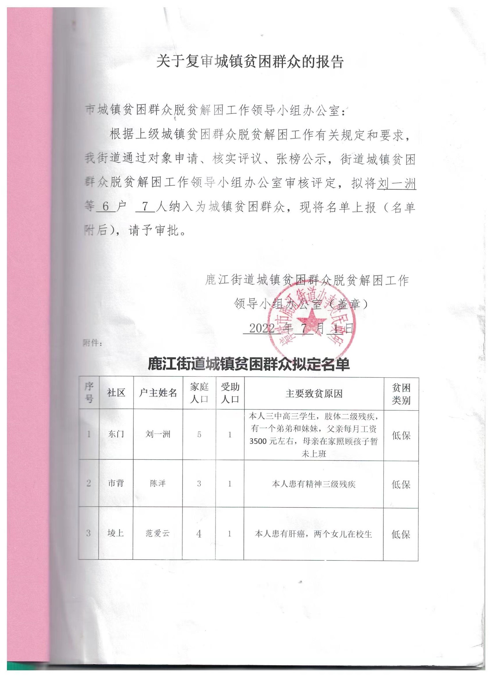鹿江街道城鎮(zhèn)貧困群眾擬定名單