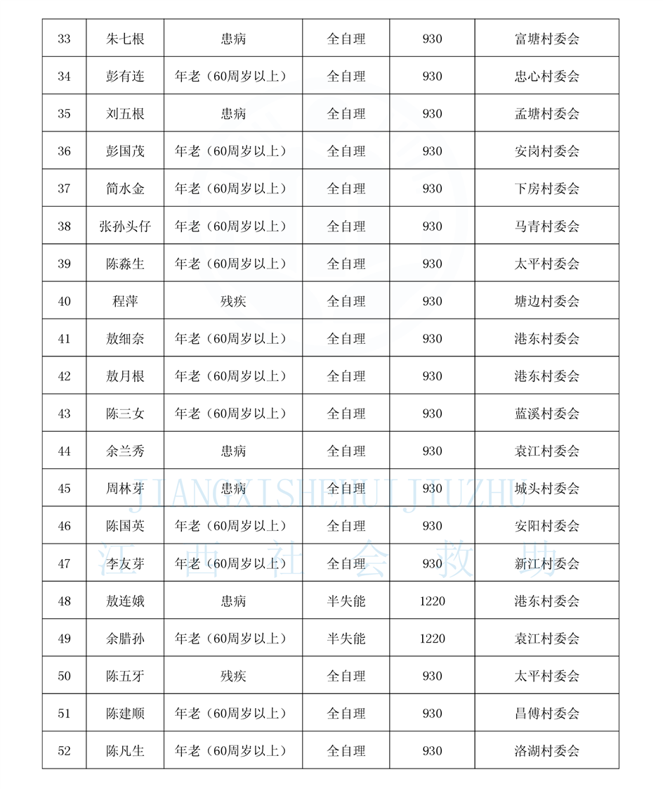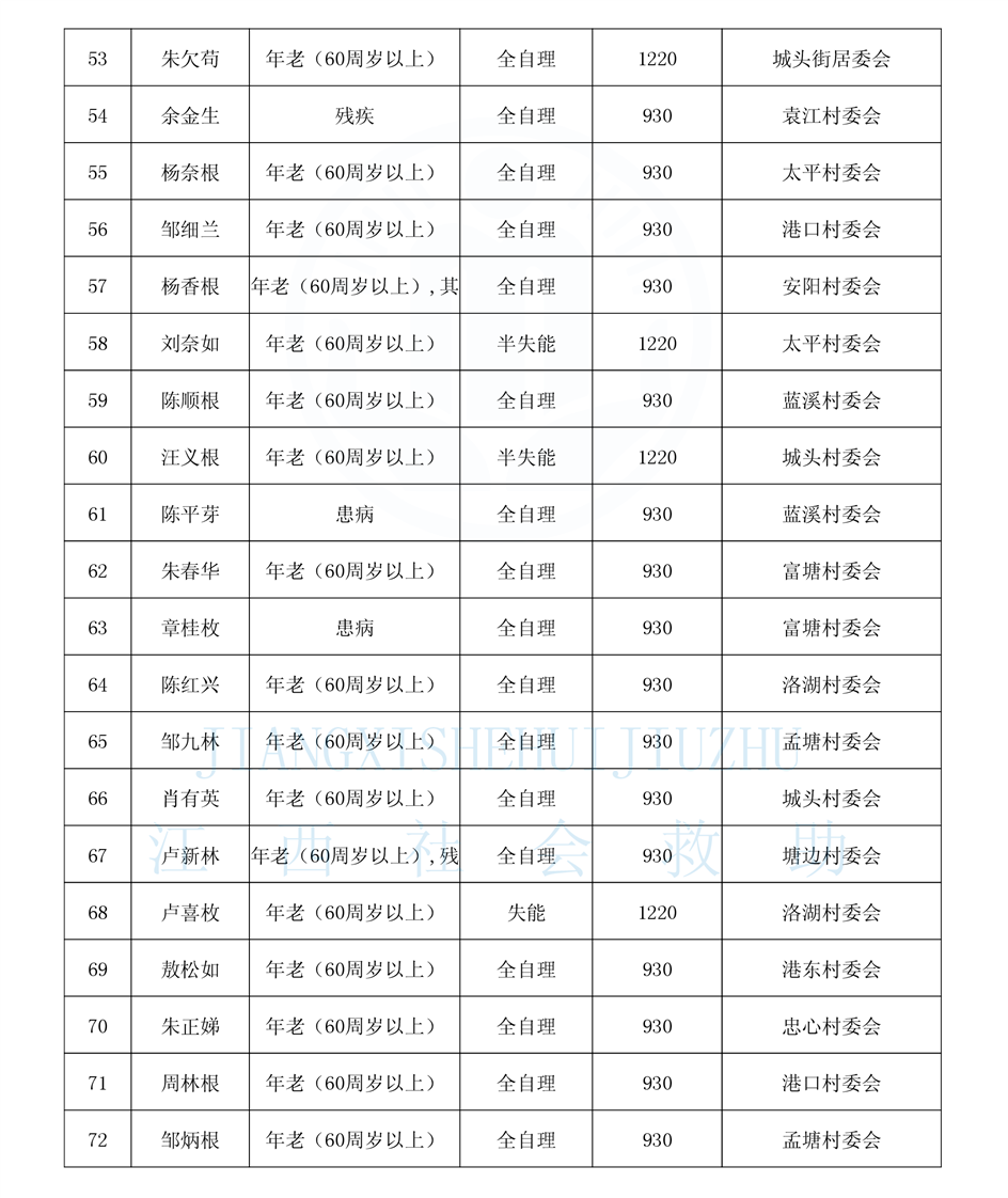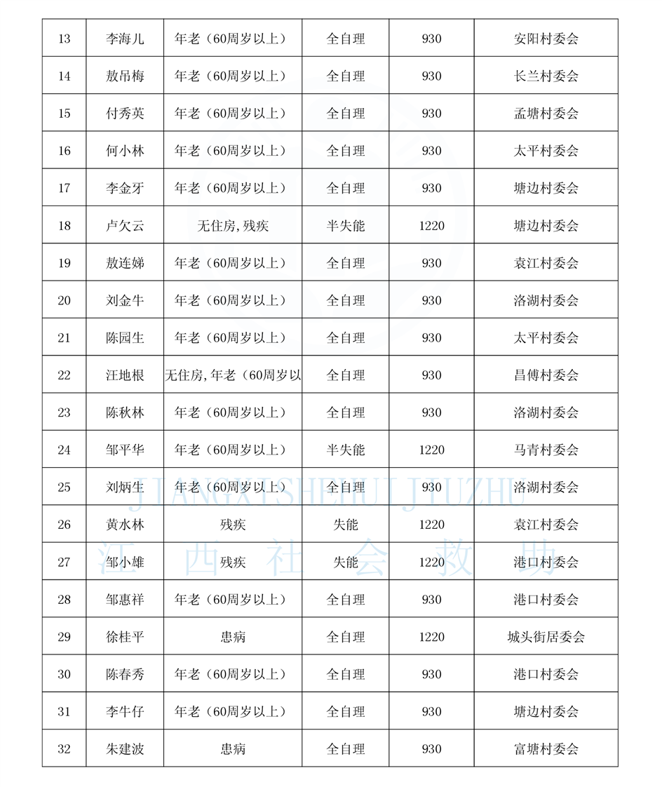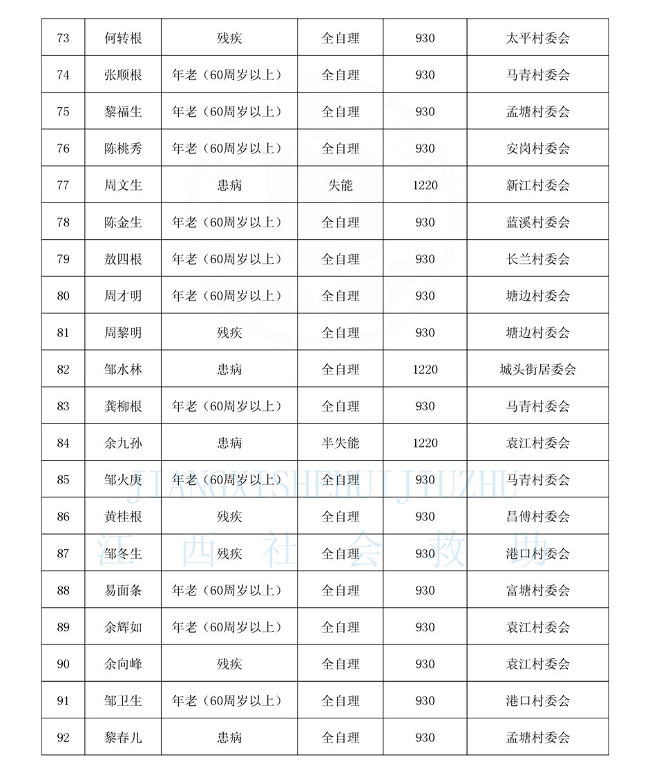 昌傅鎮2024年11月農村分散特困人員公示表