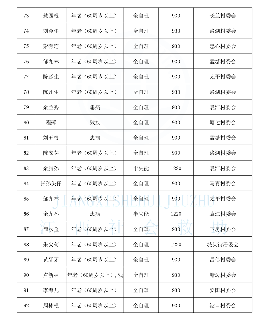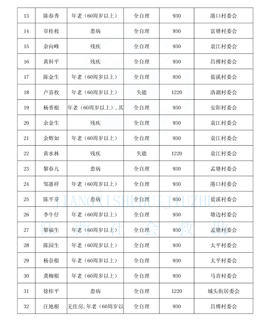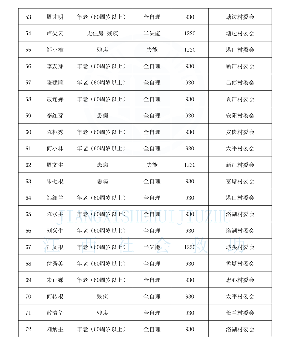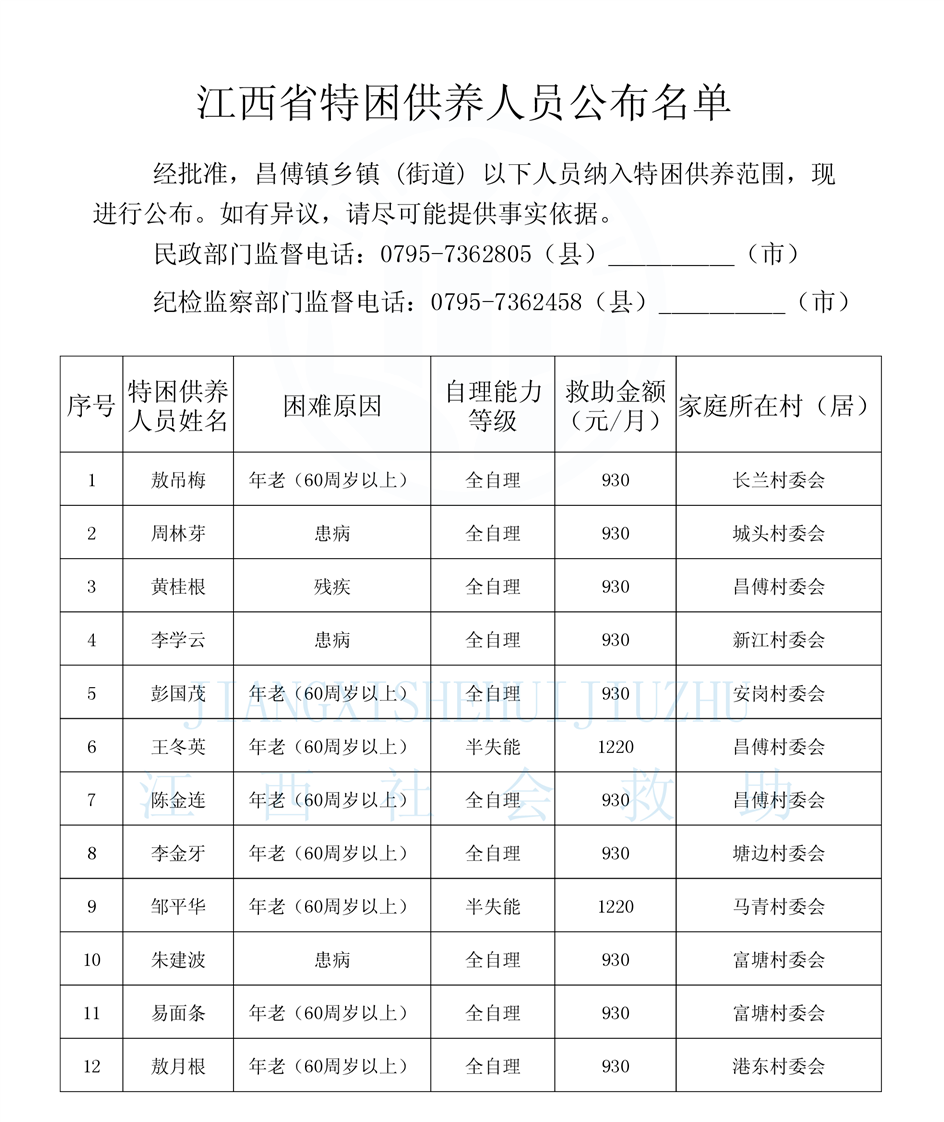 昌傅鎮2025年1月農村分散特困人員公示表