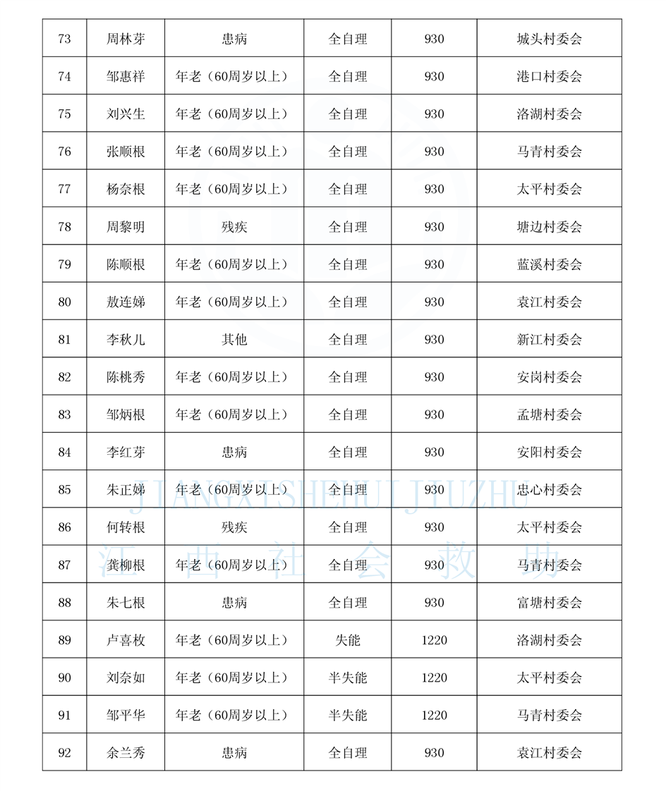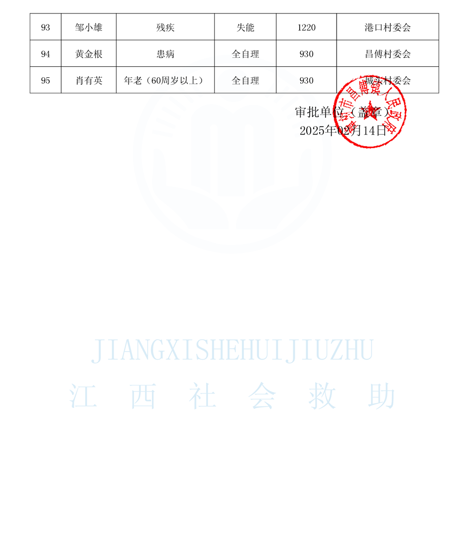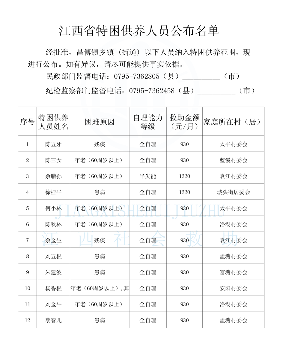 昌傅鎮2025年2月農村分散特困人員公示表