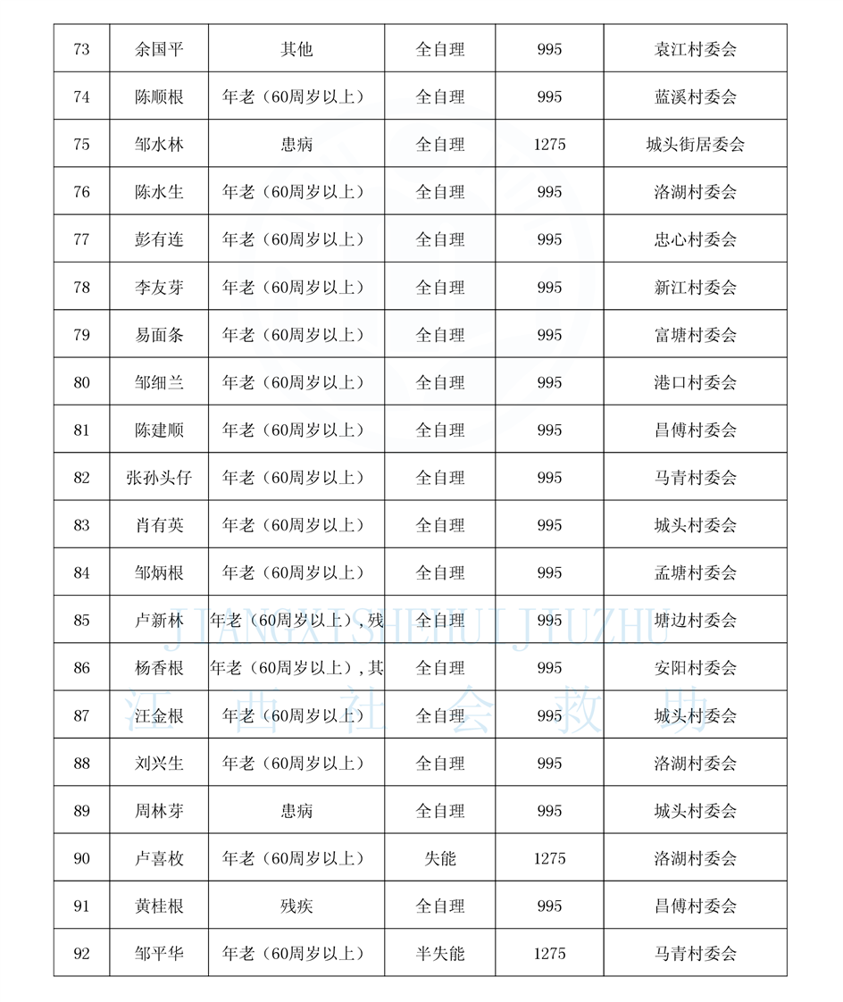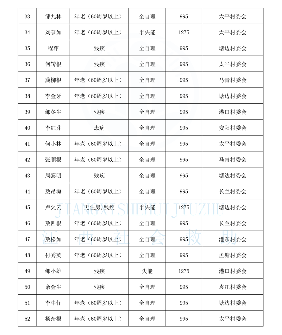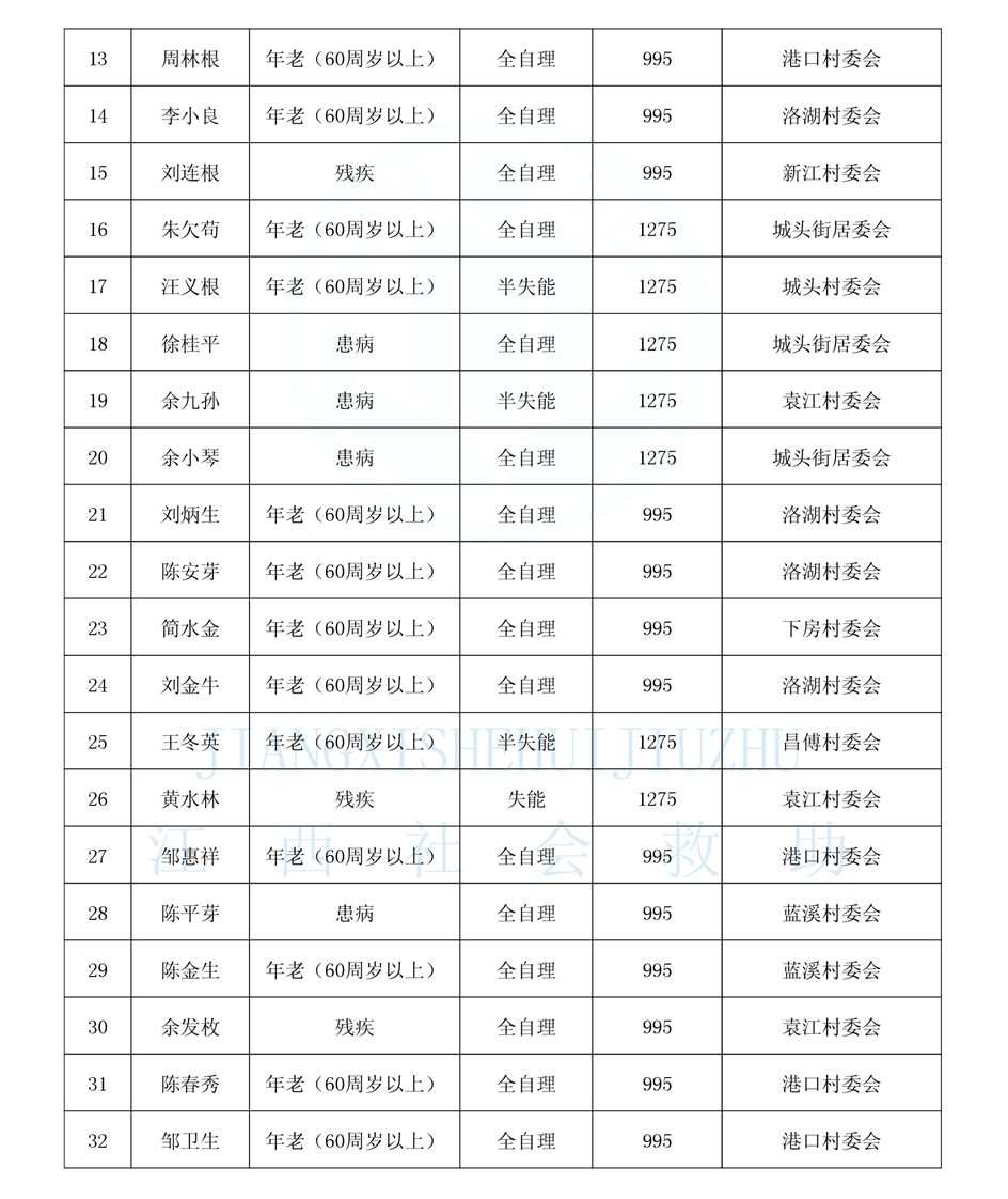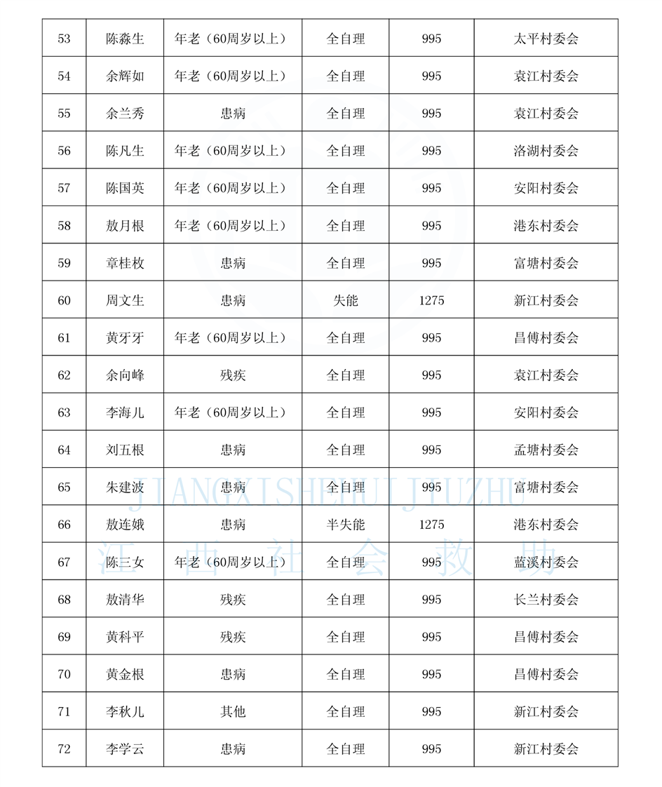 昌傅鎮2025年11月農村分散特困人員公示表