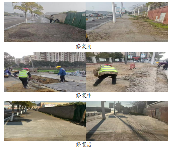 與此同時,市政園林和環衛服務中心也致力于提升市民出行體驗,在沿江路、鹽城大道、錦繡路等路段完善缺失的人行道,據統計,本次行動共完善人行道面積約600平方米,為市民群眾提供了安全舒適的步行環境。
