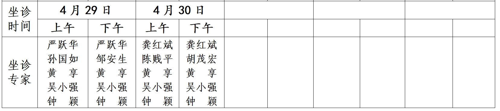 坐診時間:4月1日上午、4月7日上午、4月16日上午、4月22日上午