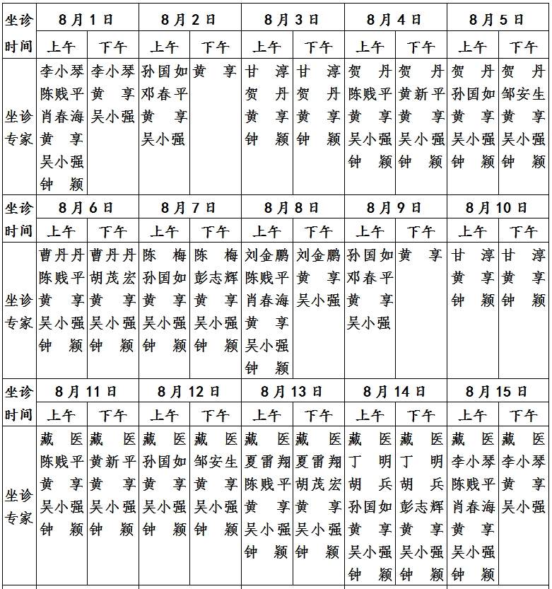 2.藏醫工作室專家(坐診時間:2025年8月11—16日,連續6天)