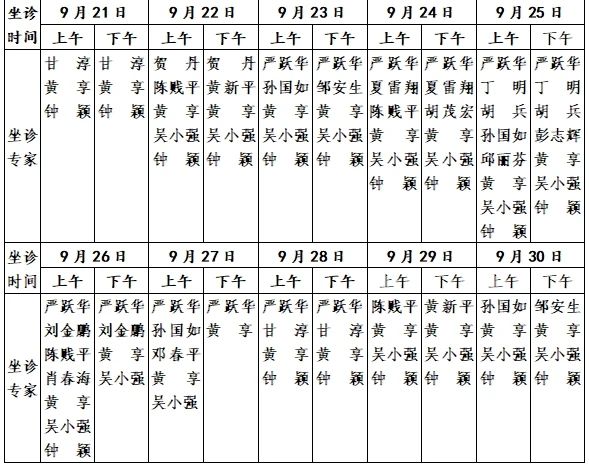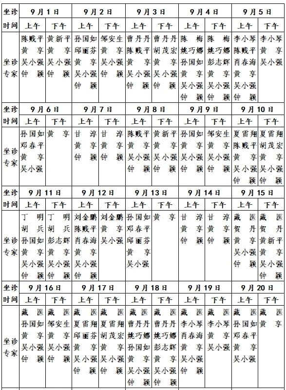 坐診時間:9月2日上午、9月13日上午、9月17日上午、9月25日上午