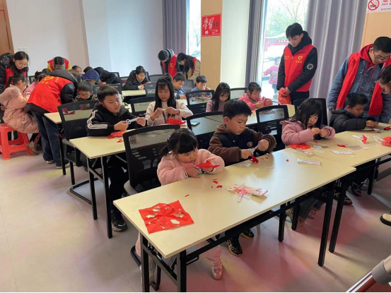 “小朋友們,大家知道剪窗花、剪過(guò)窗花嗎?”志愿者向小朋友們講解窗花的來(lái)歷和剪紙步驟,耐心地指導(dǎo)孩子們進(jìn)行剪紙創(chuàng)作,紅紙?jiān)诤⒆觽兊氖稚下白兂龌印保魇礁鳂悠恋拇盎ㄗ尯⒆觽儷@得了滿滿的成就感。