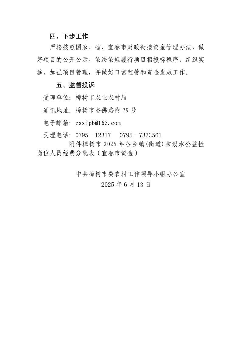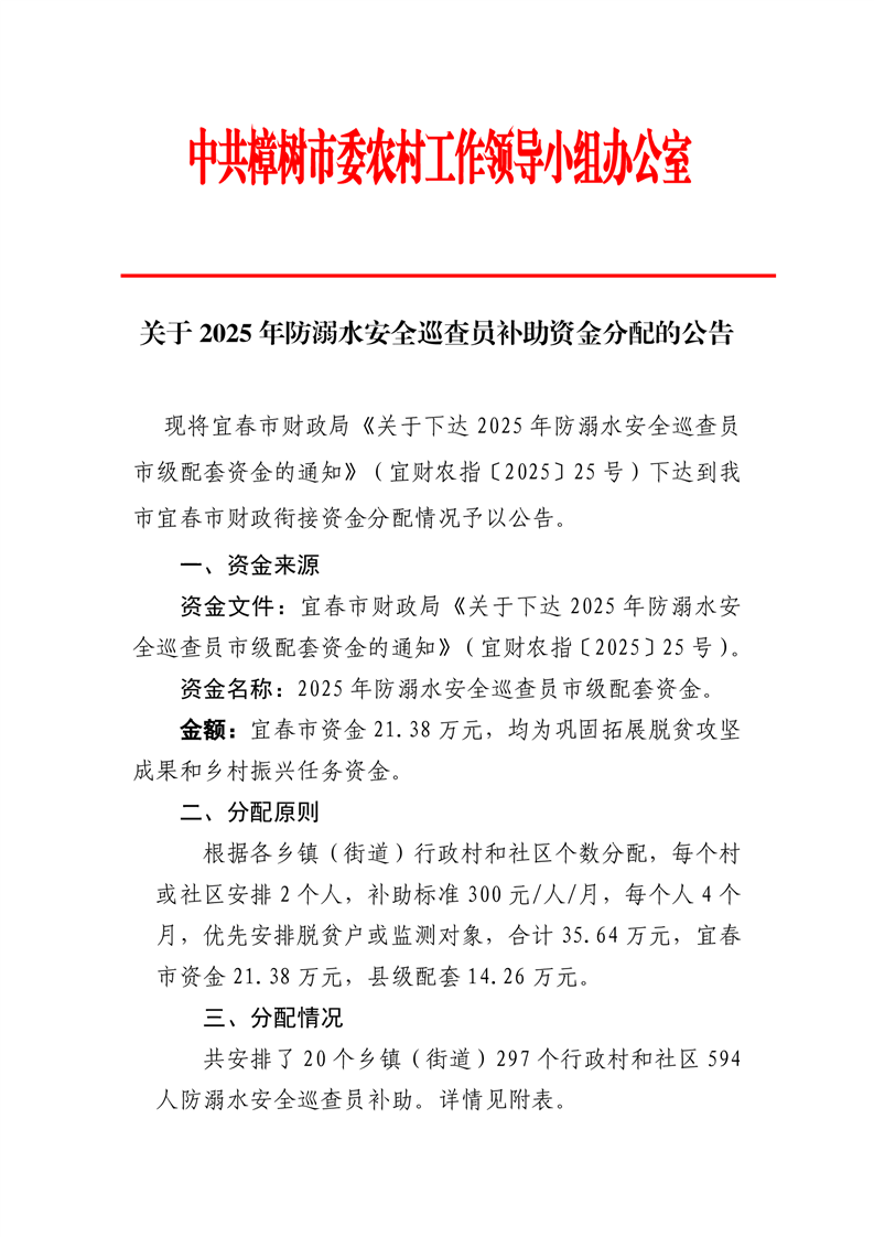 關(guān)于2025年防溺水安全巡查員補助資金分配的公告
