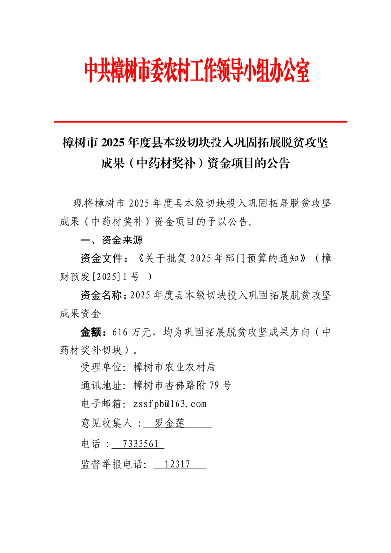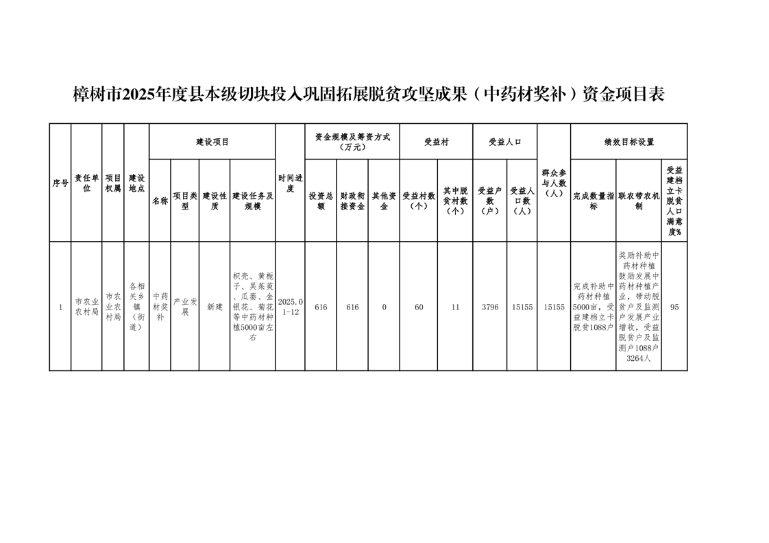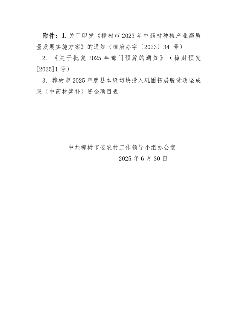 樟樹市2025年度縣本級切塊投入鞏固拓展脫貧攻堅成果(中藥材獎補)資金項目的公告