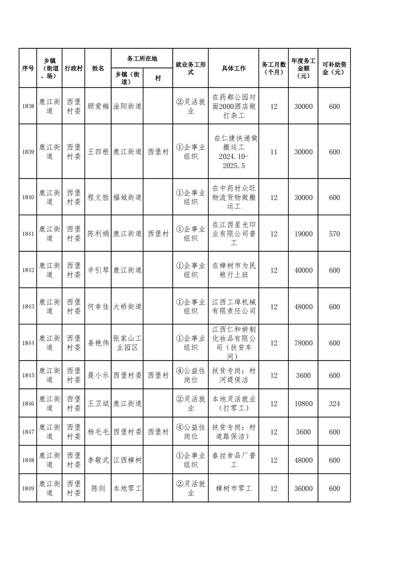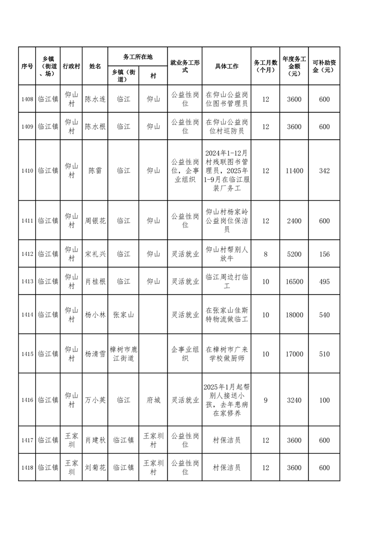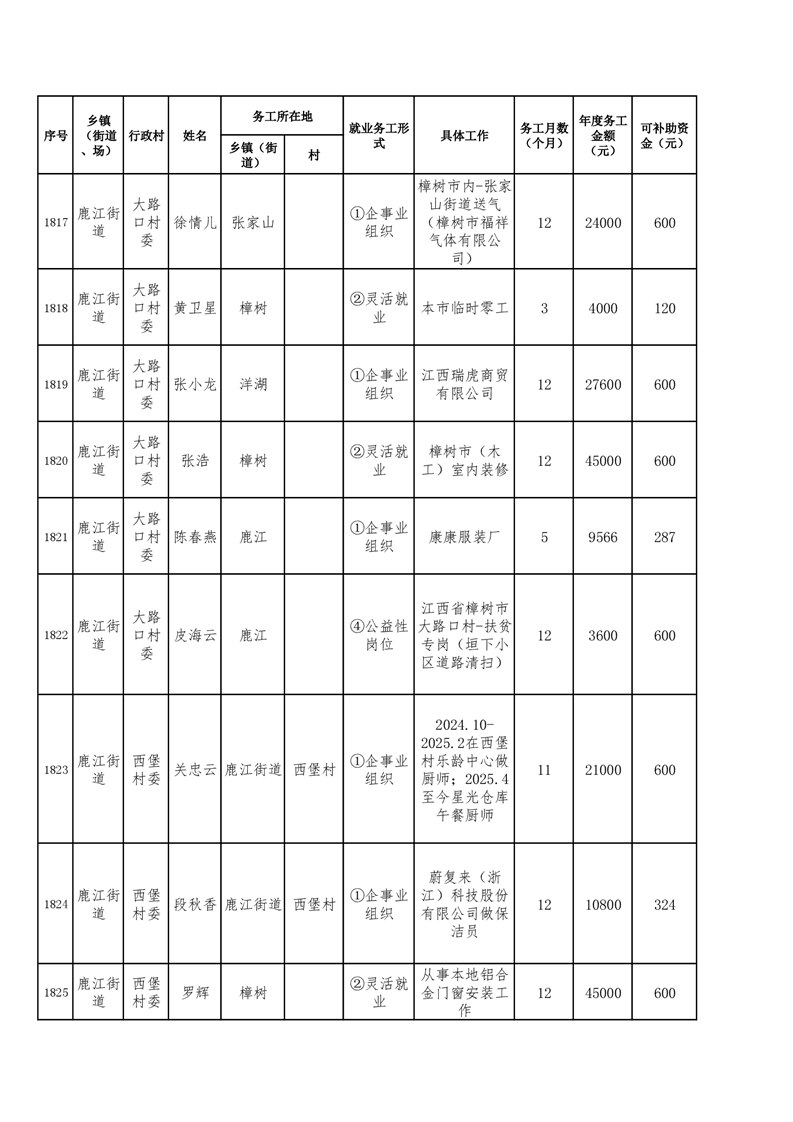 關于樟樹市2025年脫貧人口及防止返貧監測對象務工獎補的公示