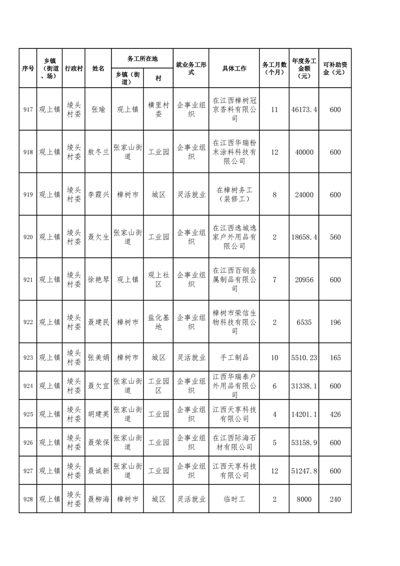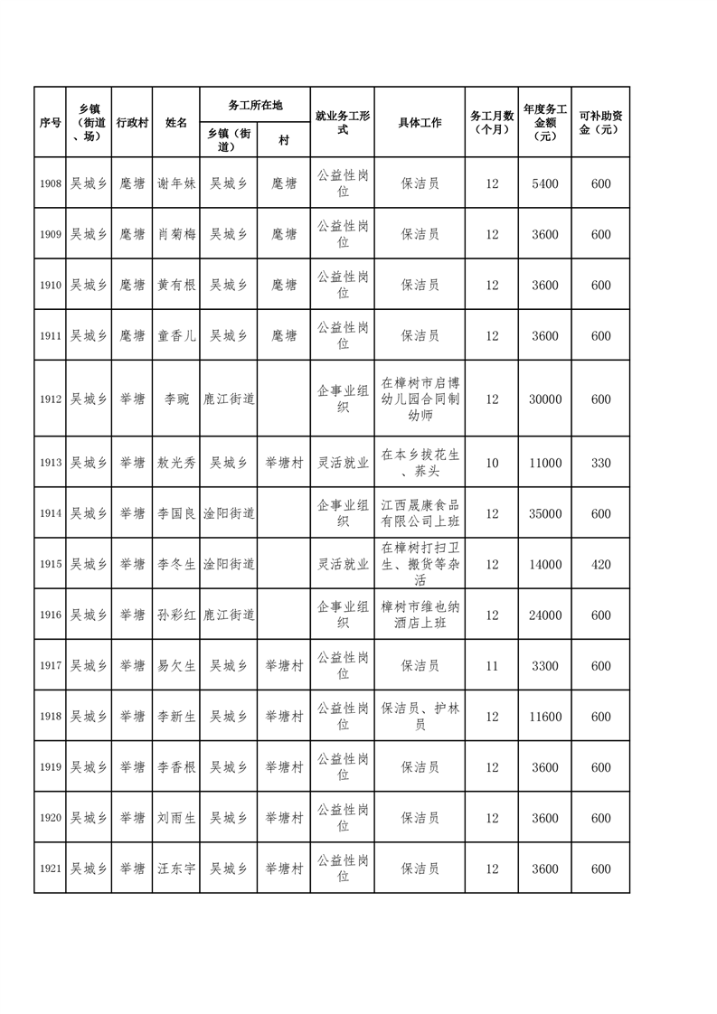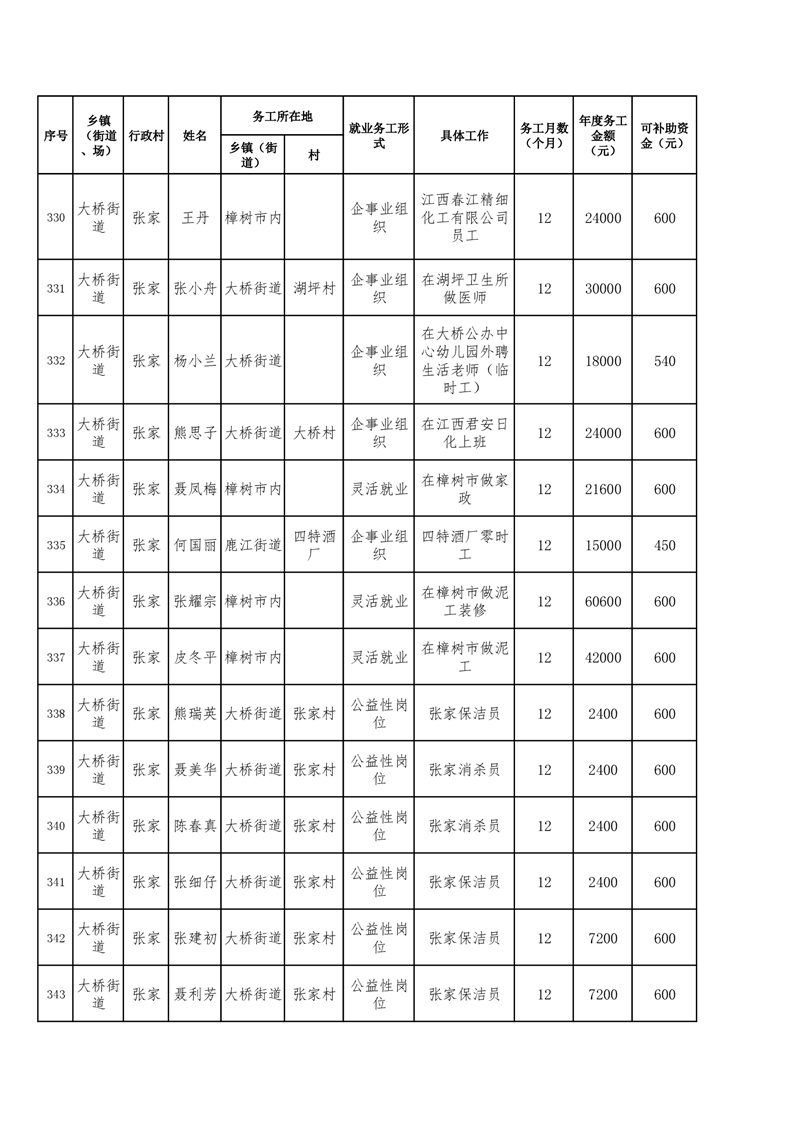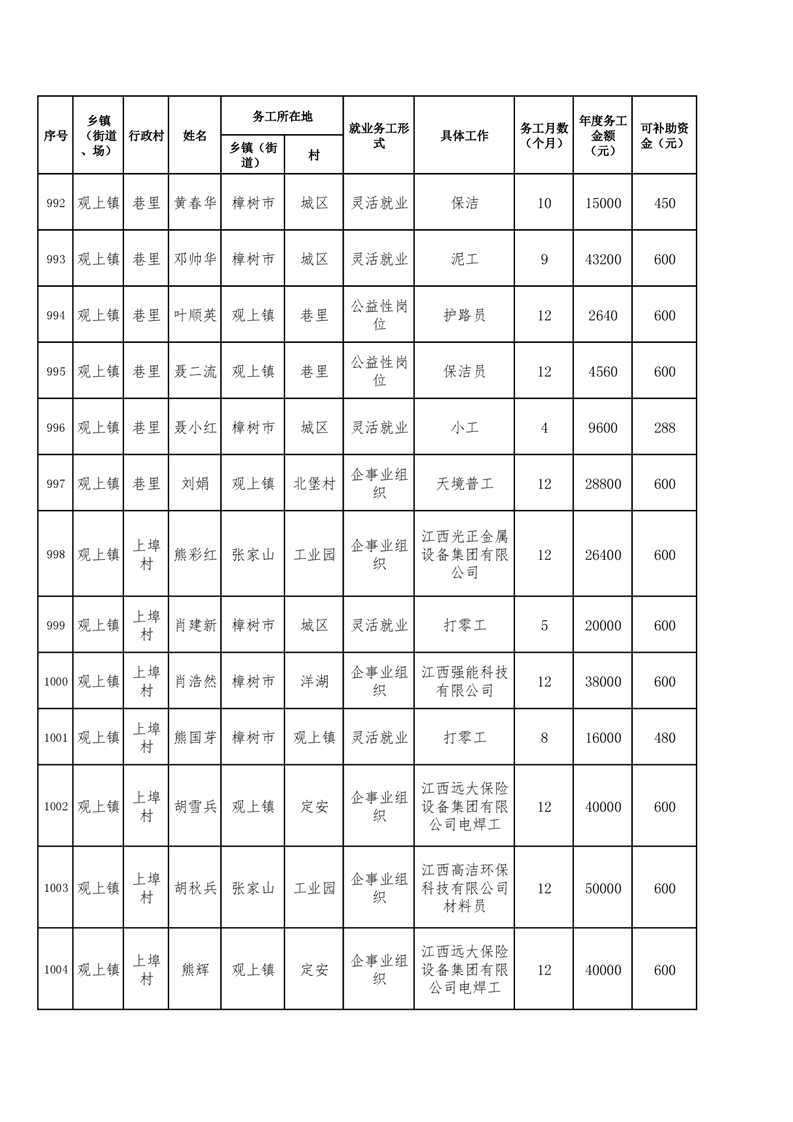 關于樟樹市2025年脫貧人口及防止返貧監測對象務工獎補的公示