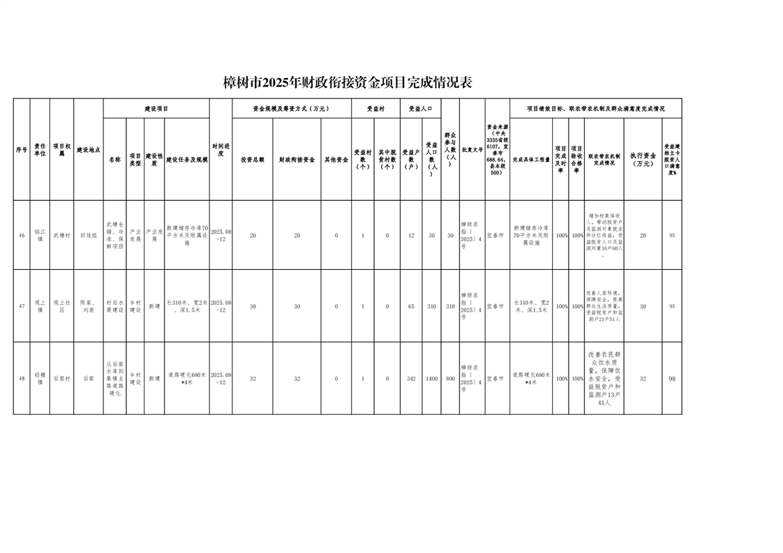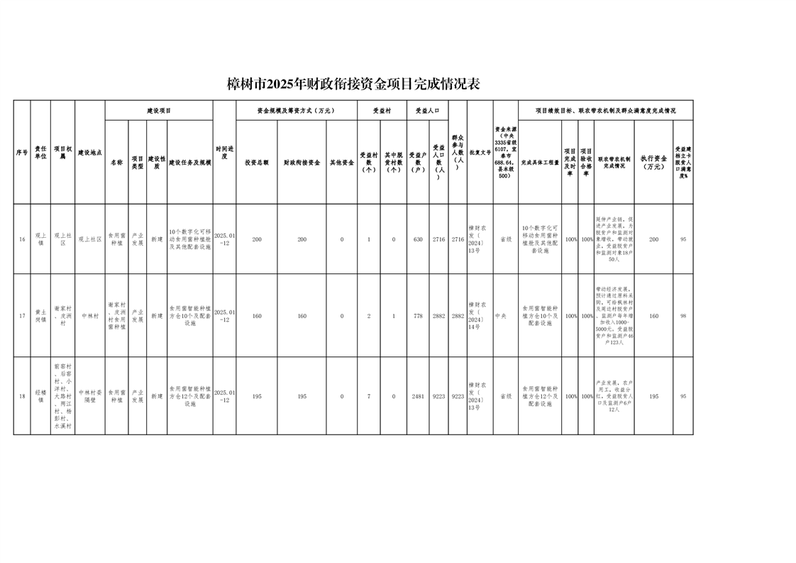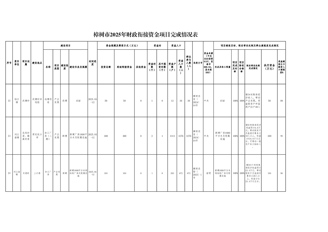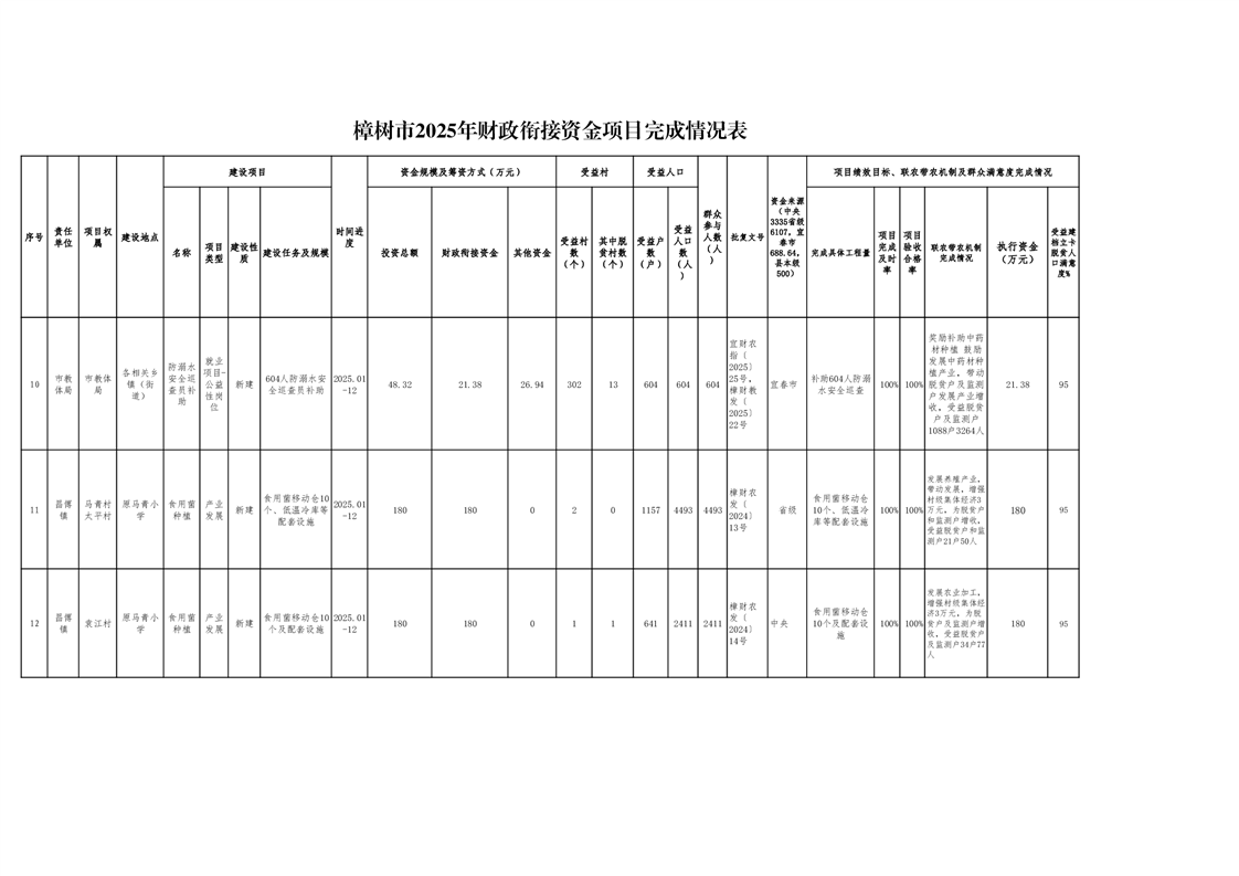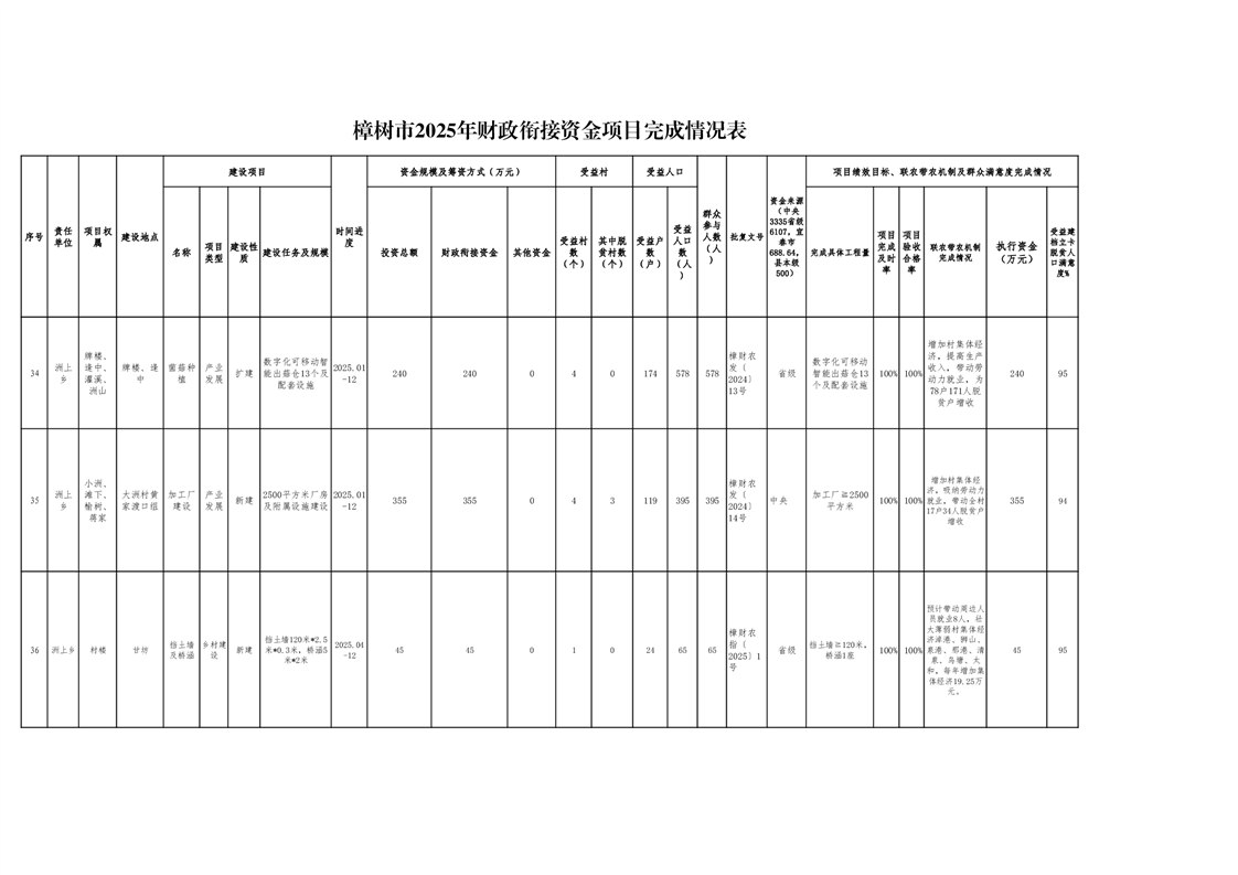 樟樹市2025年財政銜接資金項目計劃完成情況的公示