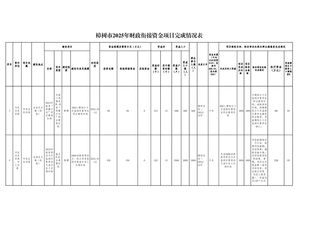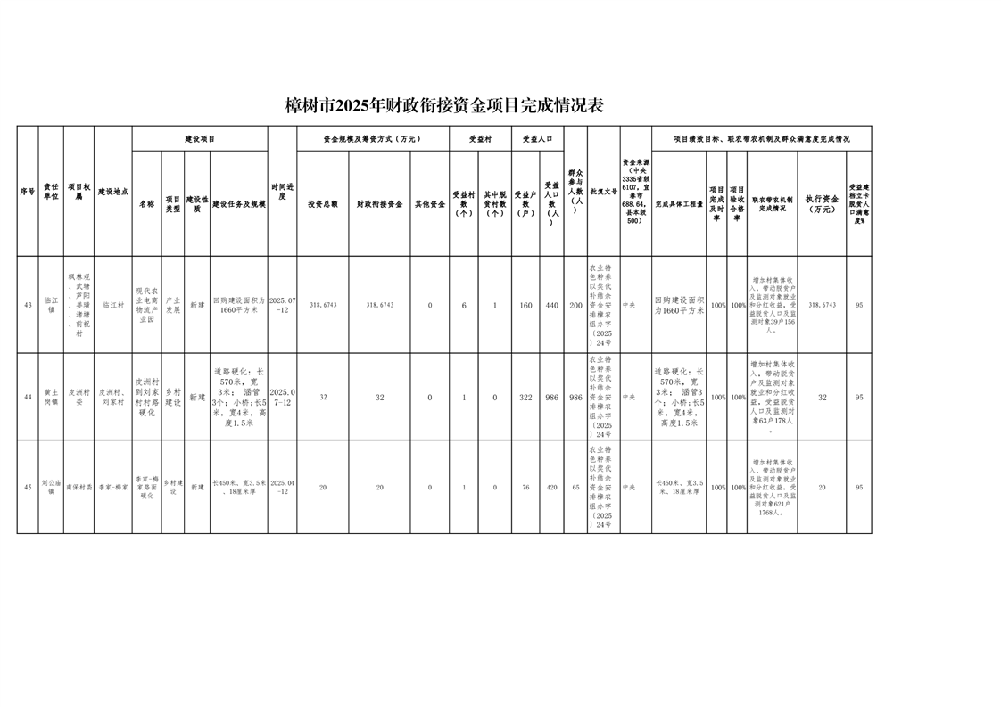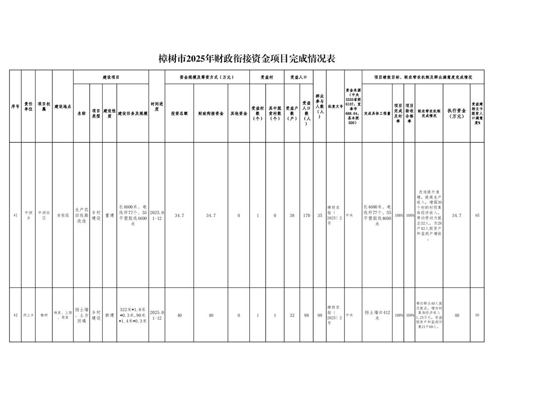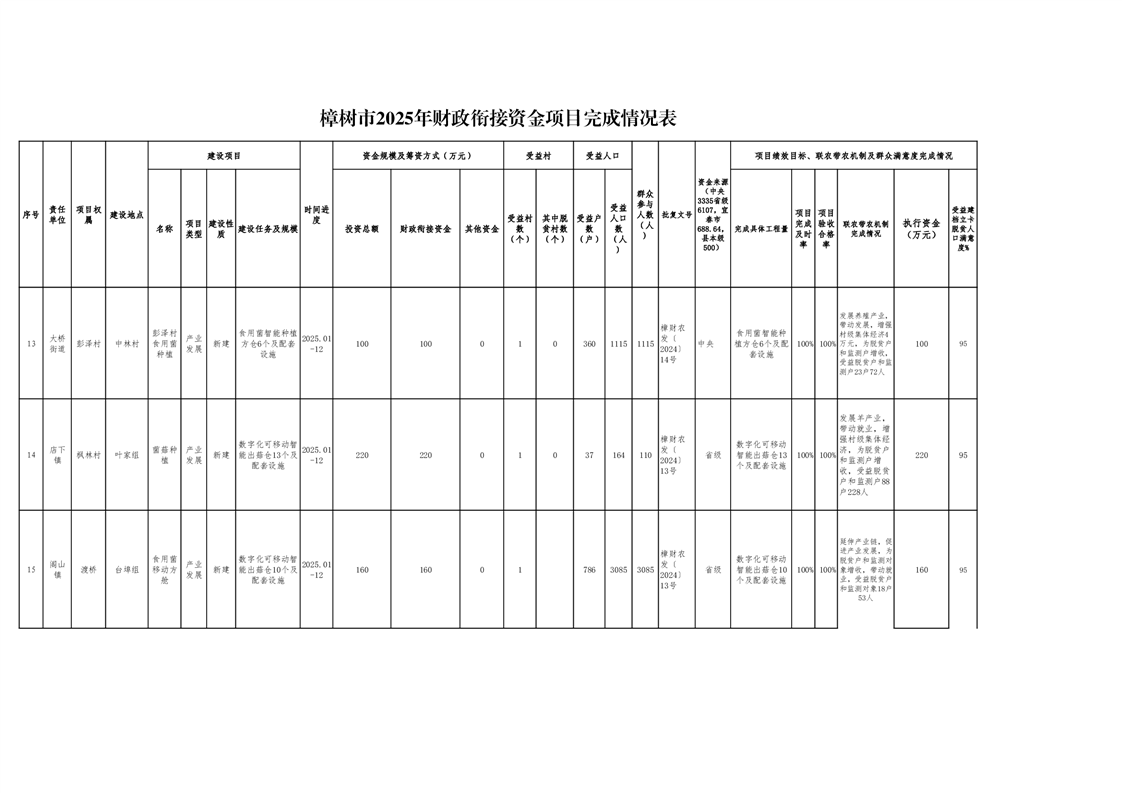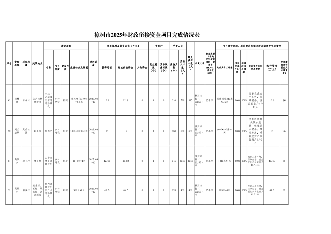 樟樹市2025年財政銜接資金項目計劃完成情況的公示