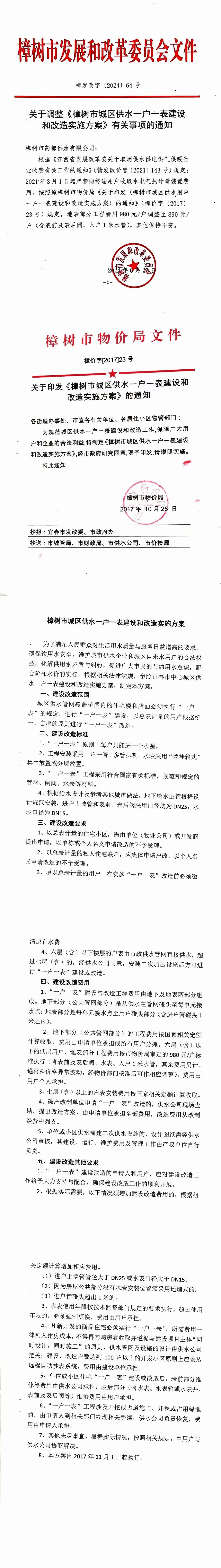 關于調整《樟樹市城區供水一戶一表建設和改造實施方案》有關事項的通知
