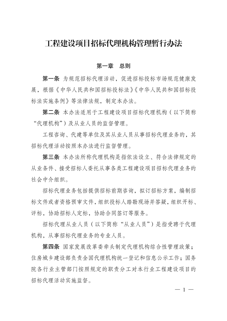 工程建設(shè)項目招標(biāo)代理機構(gòu)管理暫行辦法