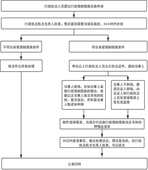簡易程序:執法人員出示執法證件—現場取證調查—告知違法事實、處罰理由和依據—聽取當事人陳述申辯—當場填寫預定格式的處罰決定書—當場送達、依法執行—結案—歸檔(備案)