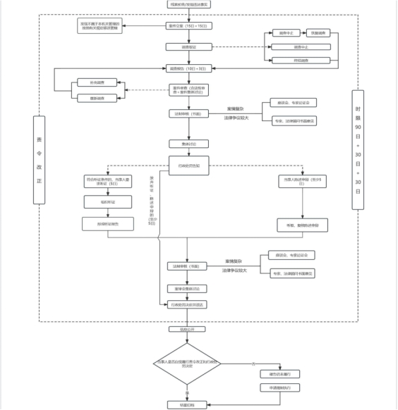 一般程序:立案—調查取證—案件審查—告知和聽證—作出處理決定—送達—執行—結案—歸檔(備案)
