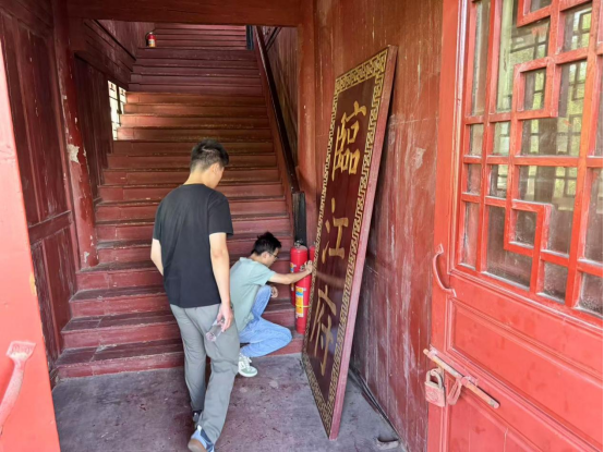 在文物保護單位安全檢查中,檢查人員重點查看文物安保制度落實情況,場內用電、用氣情況、保護范圍及建設控制地帶內有無危害文物安全情況,是否存在破壞文物、損壞文物等違法行為,積極宣傳《中華人民共和國文物保護法》等法律法規,強調堅決做好屬地管理服務。