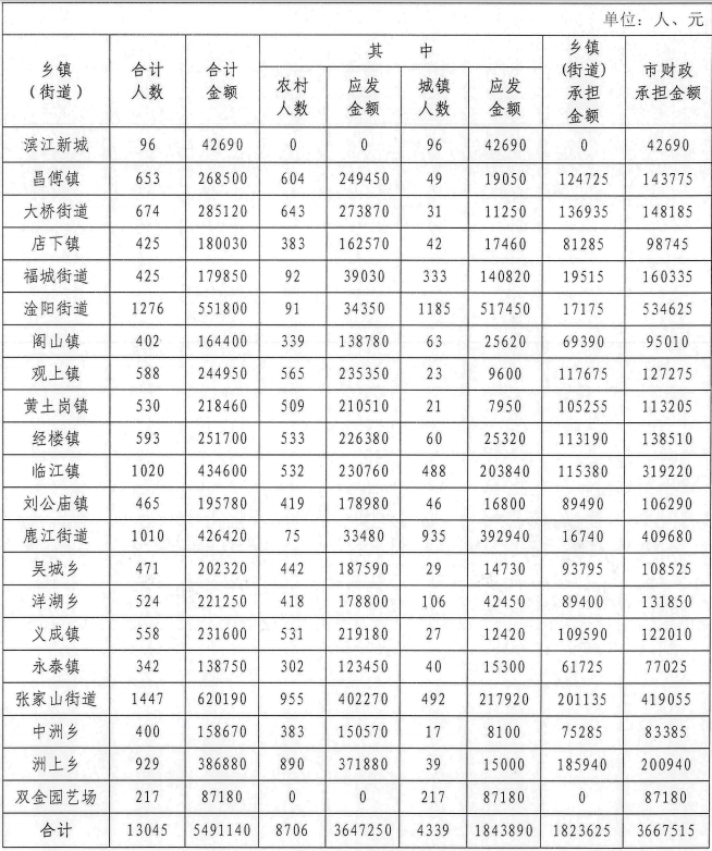 樟樹市2024年上半年長壽老人高齡津貼發放匯總表
