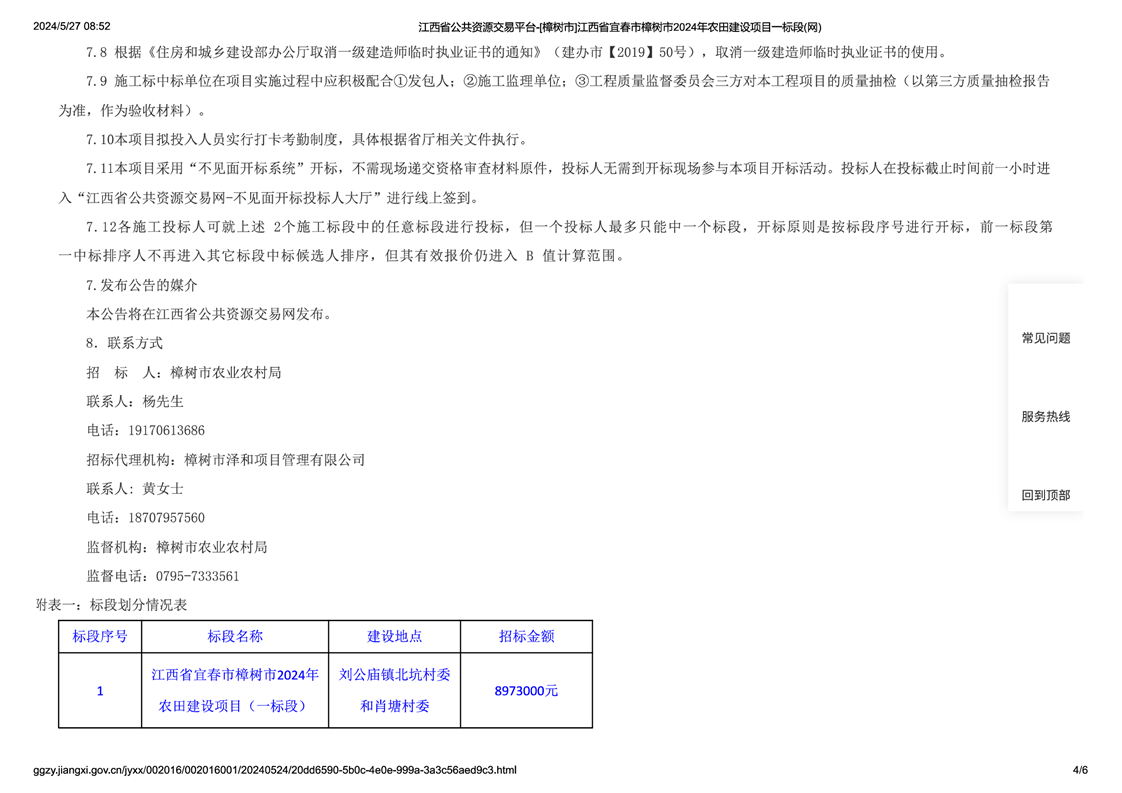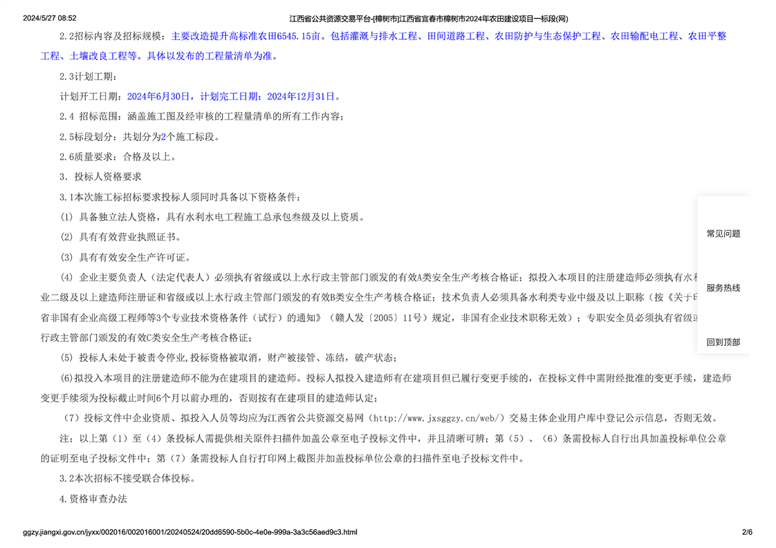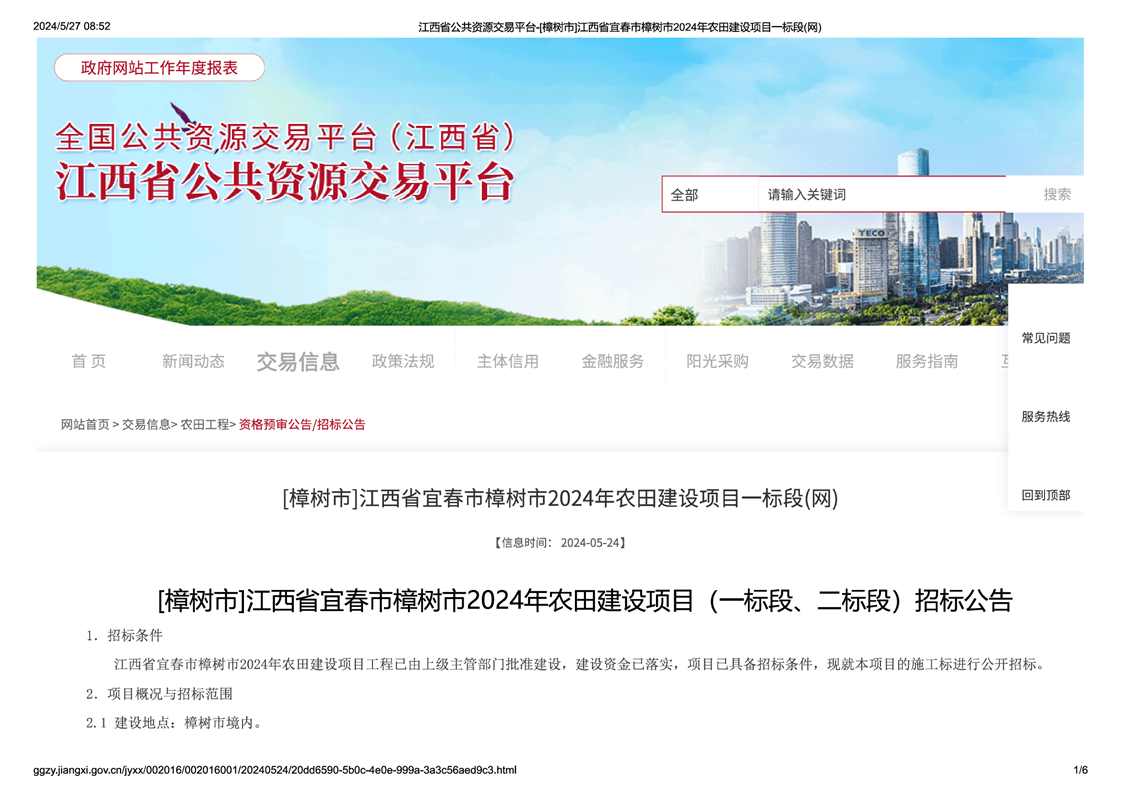 江西省宜春市樟樹市2024年農田建設項目(一標段、二標段)招標公告