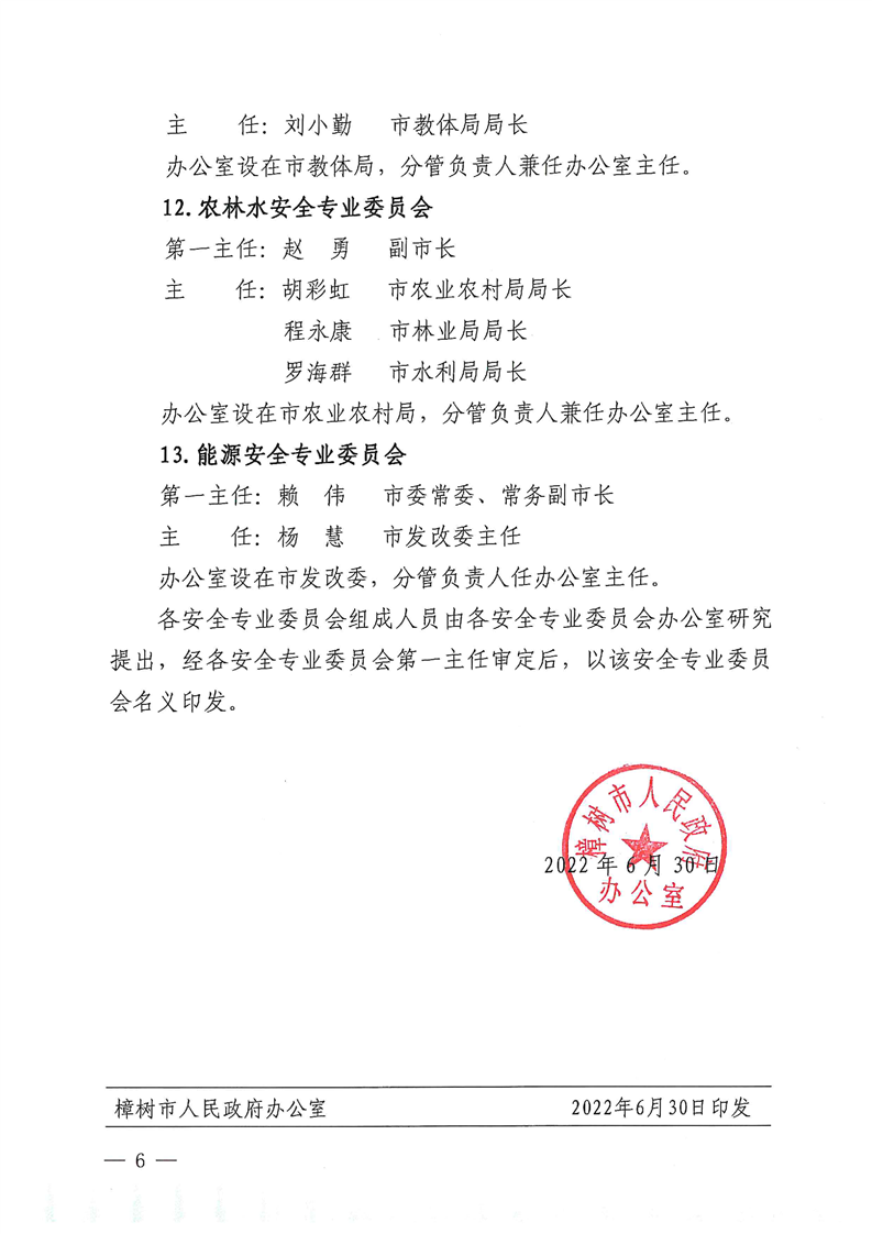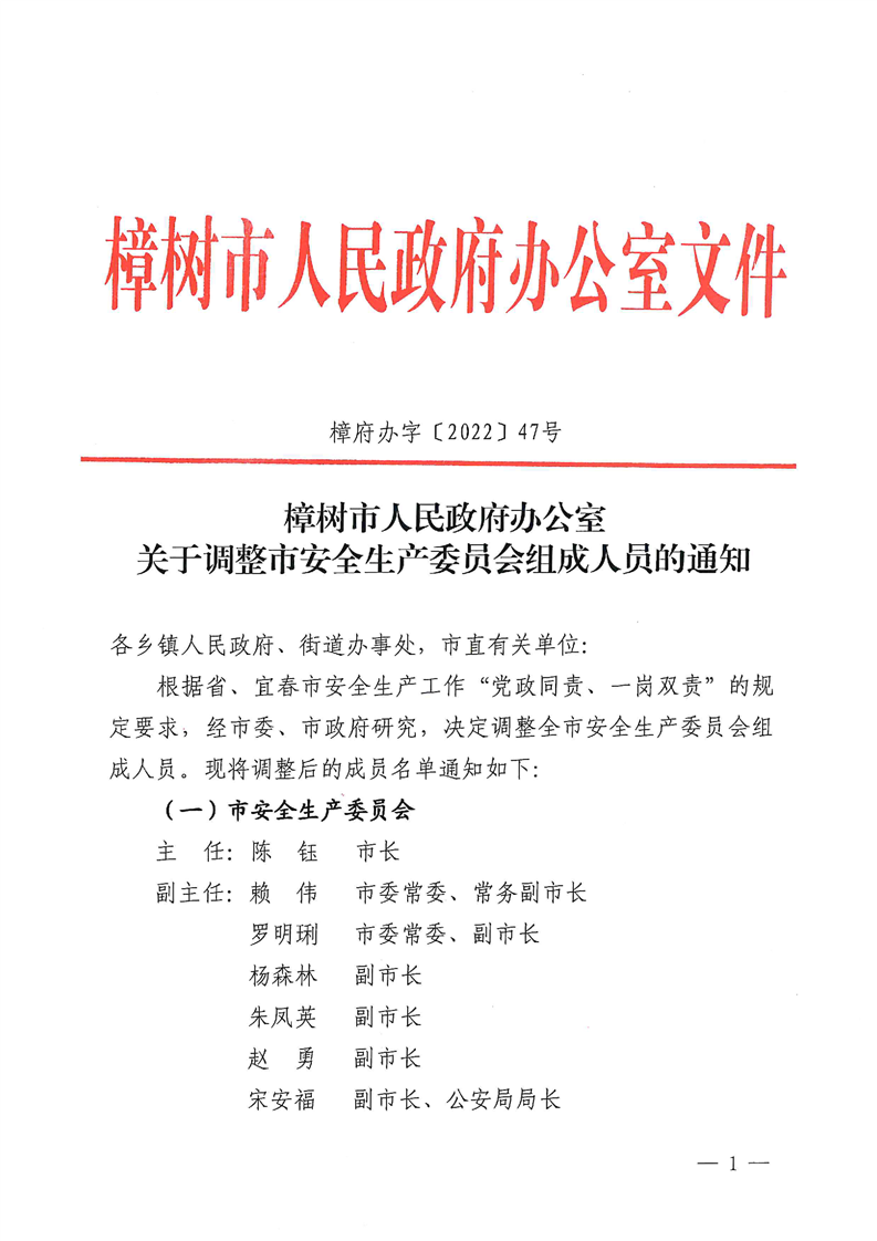 樟府辦字〔2022〕47號關于調整市安委會組成人員的通知
