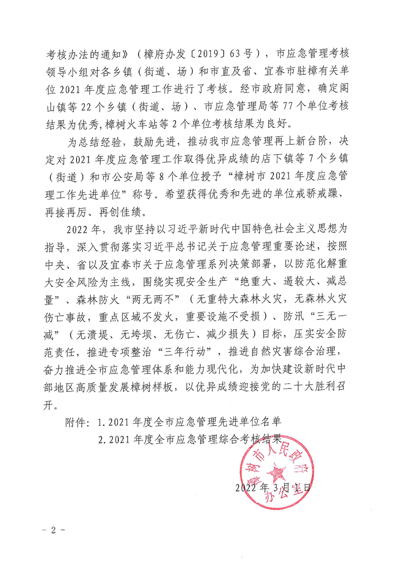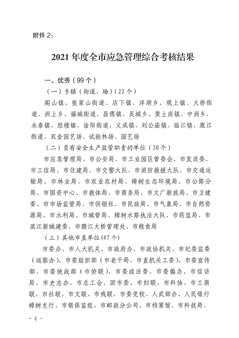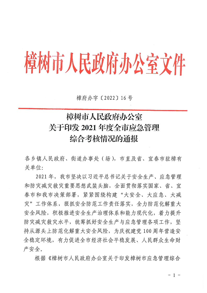 樟府辦字〔2022〕16號-關于印發2021年度全市應急管理綜合考核情況的通報 (復件)