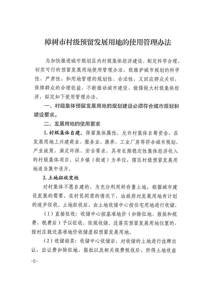 樟樹市人民政府關于印發《樟樹市村級預留發展用地的使用管理辦法》的通知