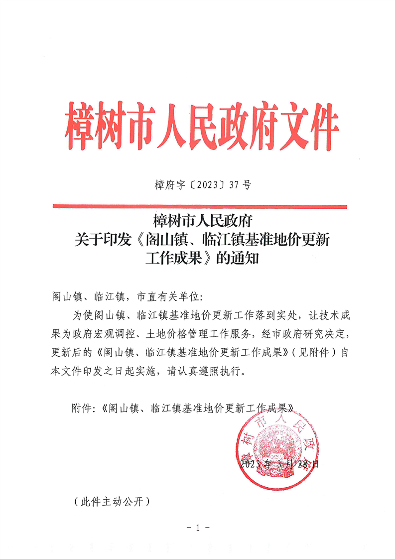 樟樹市人民政府關(guān)于印發(fā)《閣山鎮(zhèn)、臨江鎮(zhèn)基準(zhǔn)地價更新工作成果》的通知