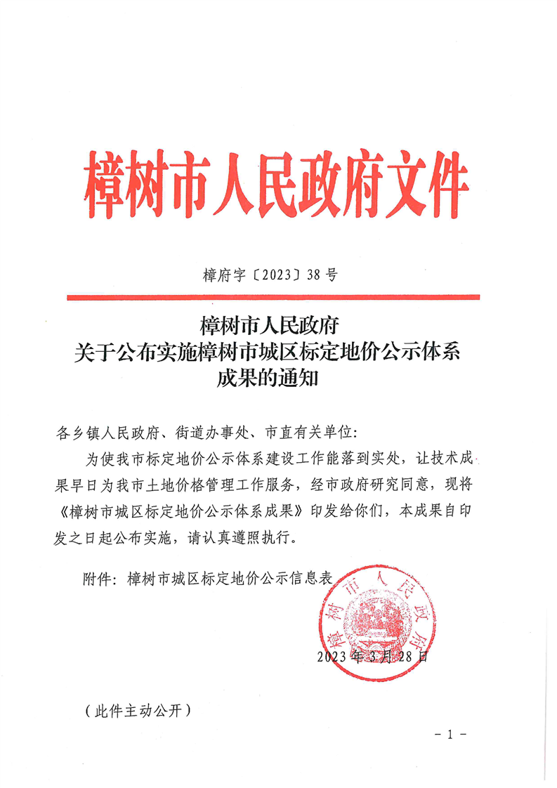 樟樹市人民政府關于公布實施樟樹市城區標定地價公示體系成果的通知