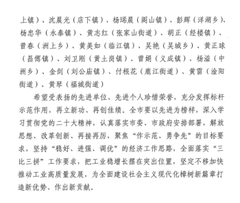 樟府辦字〔2023〕44號關于2022年度推進工業經濟高質量發展先進單位和個人的通報
