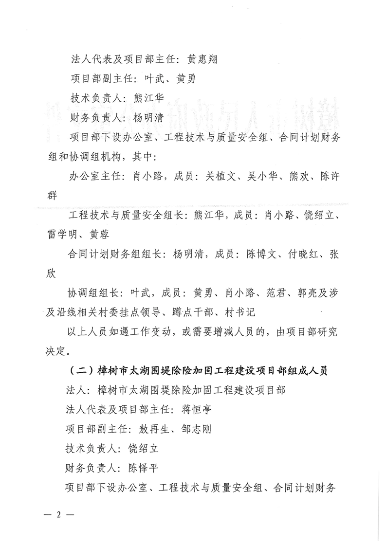 樟府辦字〔2023〕49號關于成立樟樹市長公堤下段和太湖圍堤除險加固工程兩個建設項目部的通知