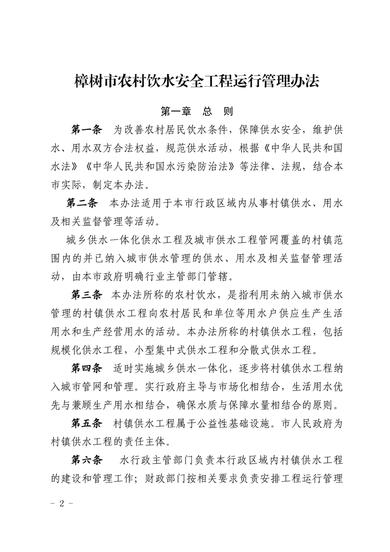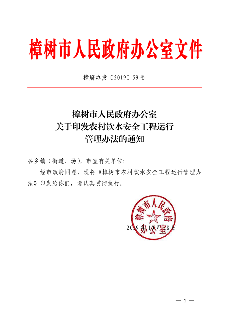 樟府辦發〔2019〕59號 關于印發農村飲水安全工程運行管理辦法的通知