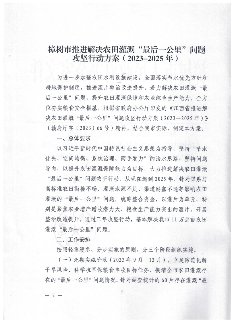 樟府辦發(fā)〔2023〕68號 關(guān)于《樟樹市推進解決農(nóng)田灌溉“最后一公里”問題攻堅行動方案》的通知