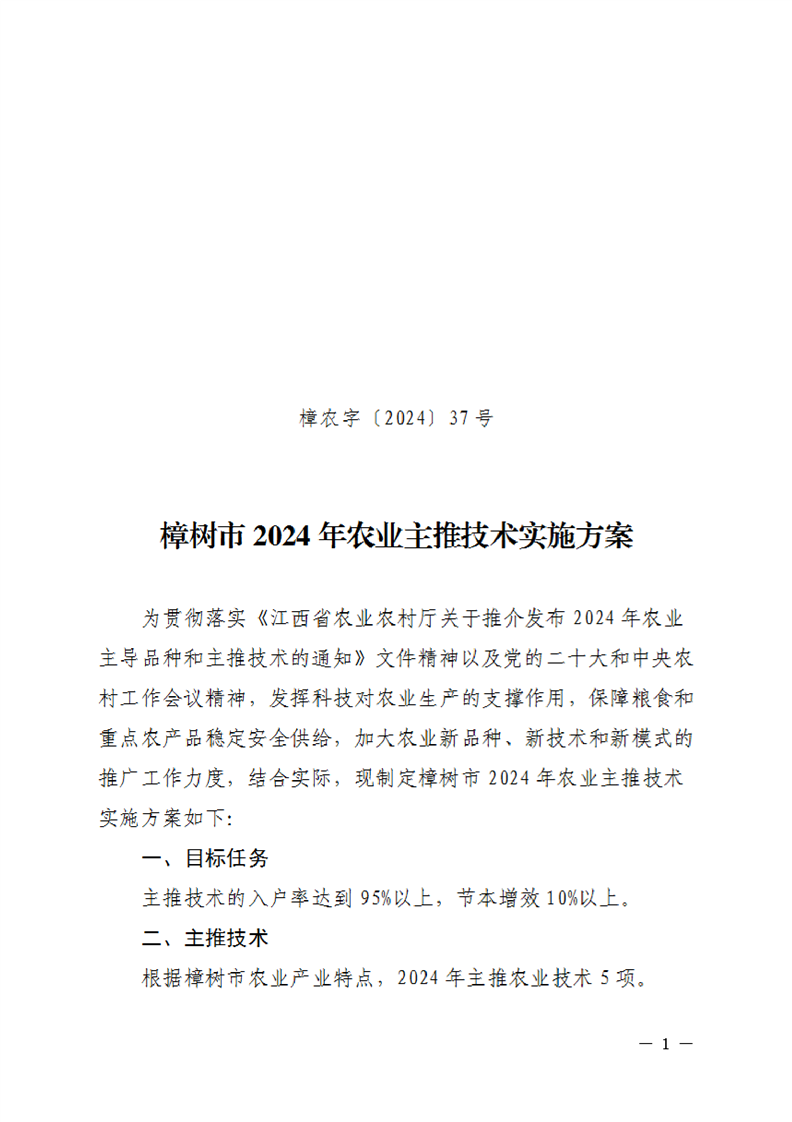 樟農字〔2024〕37號樟樹市2024年農業主推技術實施方案