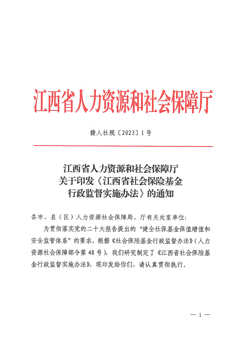 關于印發《江西省社會保險基金行政監督實施辦法》的通知
