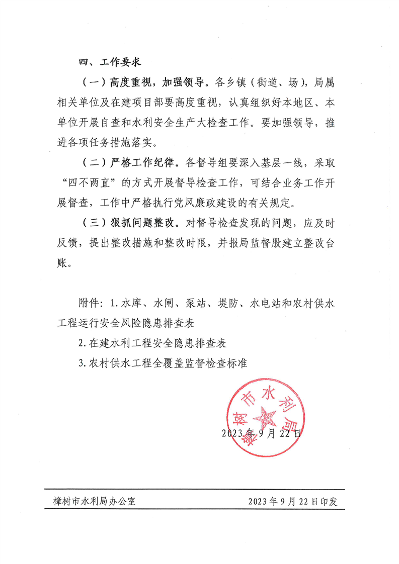 關于開展樟樹市水利行業中秋、國慶期間安全生產檢查暨第三季度水利綜合督查的通知