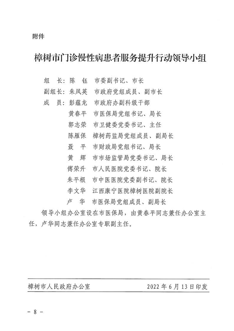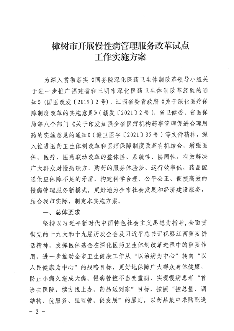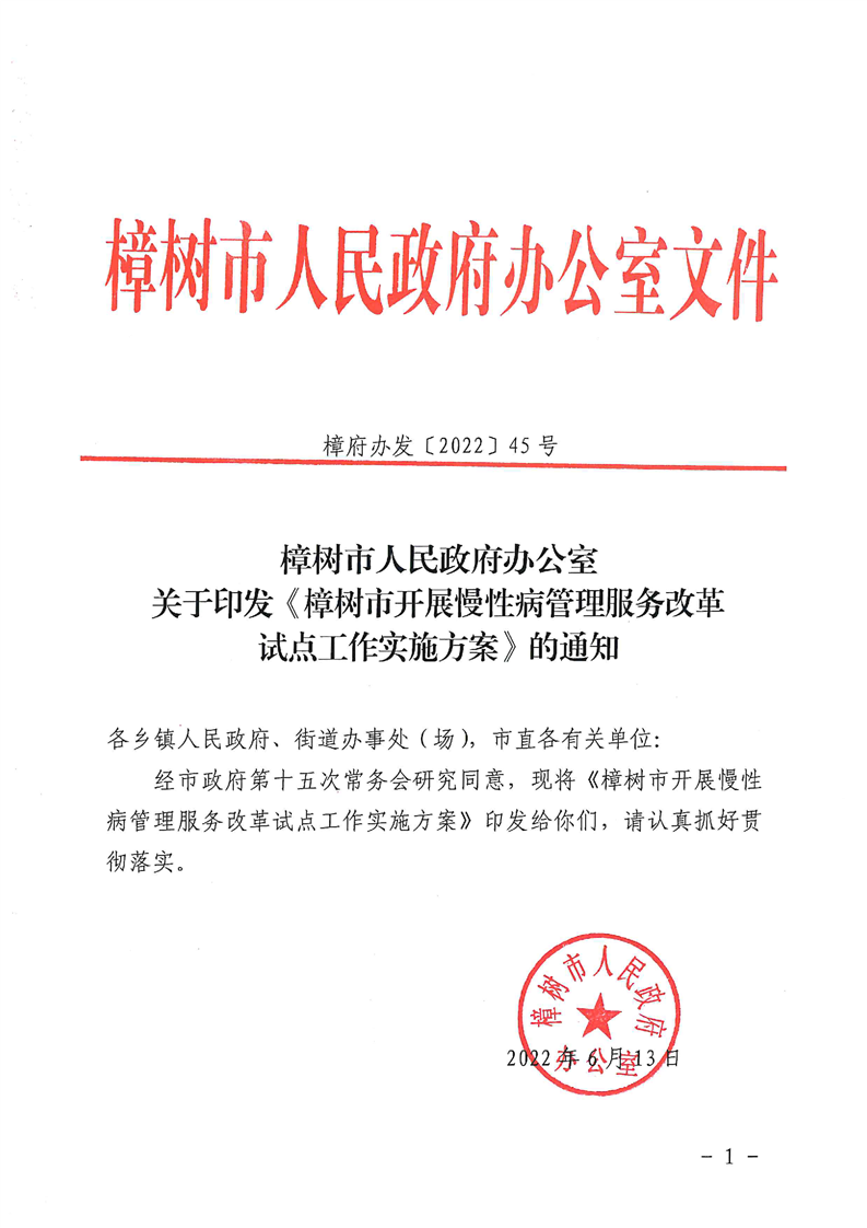 樟府辦發〔2022〕45號 樟樹市人民政府辦公室關于印發《樟樹市開展慢性病管理服務改革試點工作實施方案》的通知