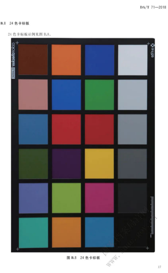 6.2.1 采集設(shè)備調(diào)試采用縮微解像力標(biāo)板驗(yàn)證縮微影像的解像力,采用灰度標(biāo)板矯正縮微影像的密度,采用分辨率測(cè)試卡校正數(shù)字圖像的清晰度,采用24色卡標(biāo)板校正數(shù)字圖像的彩色。采集設(shè)備調(diào)試完成后試片,試片合格后進(jìn)入采集環(huán)節(jié)。