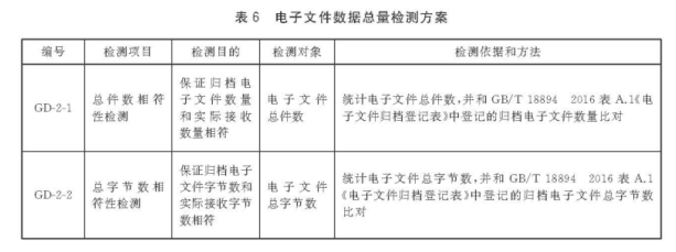 檢測實際歸檔的電子文件數量和字節數與 GB/T 18894一2016 的表A.1《電子文件歸檔登記表》中登記的電子文件數量和字節數是否相符。