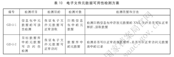 檢測電子文件歸檔信息包的信息組織結構和內容是否符合國家有關規定;檢測歸檔的信息包與業務部門發送的信息包是否一致。