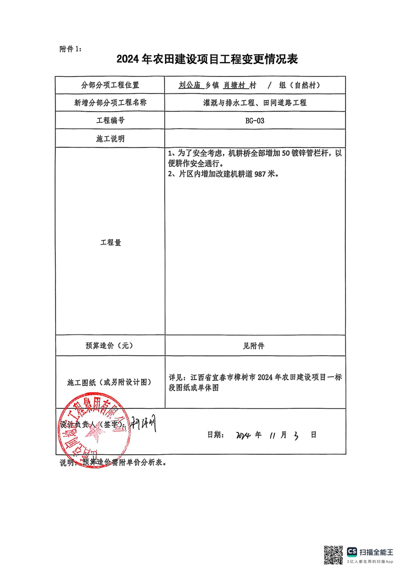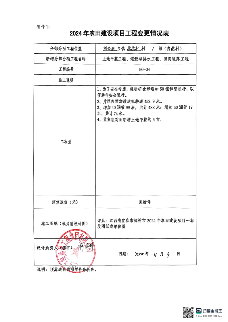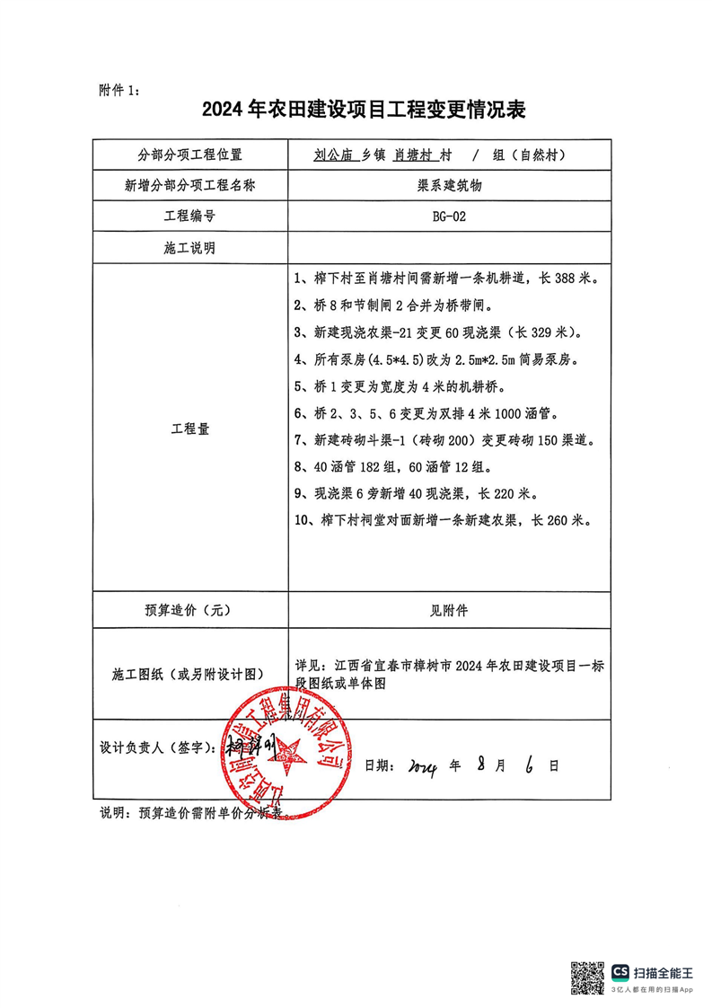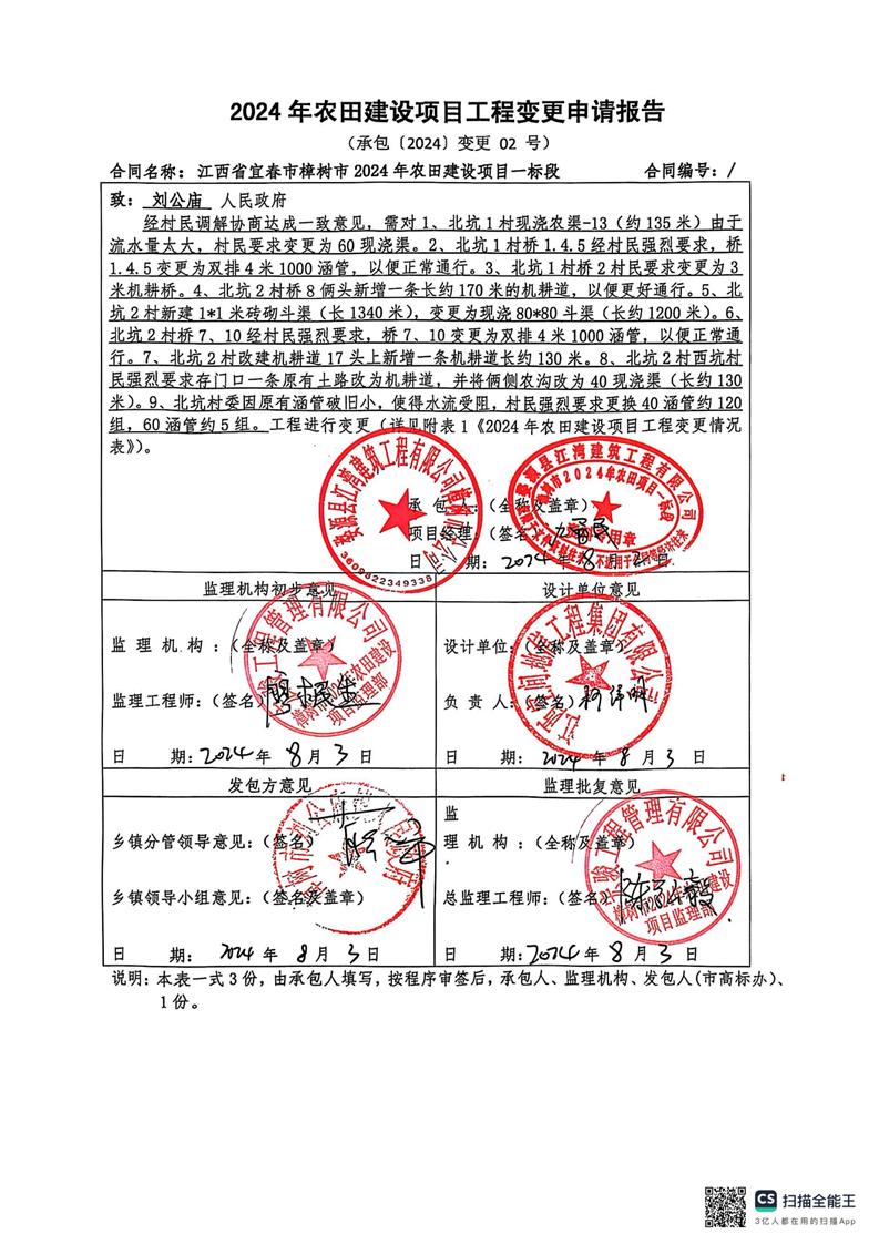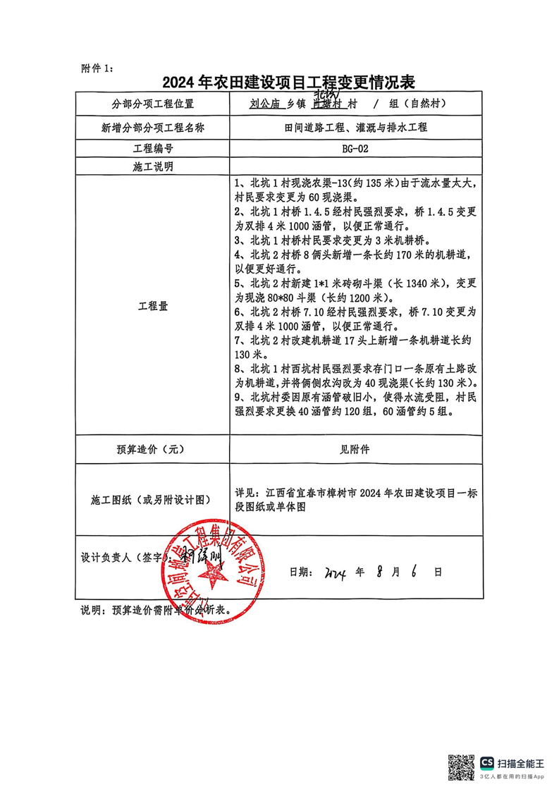 江西省宜春市樟樹市2024年農(nóng)田建設(shè)項目一標段設(shè)計變更
