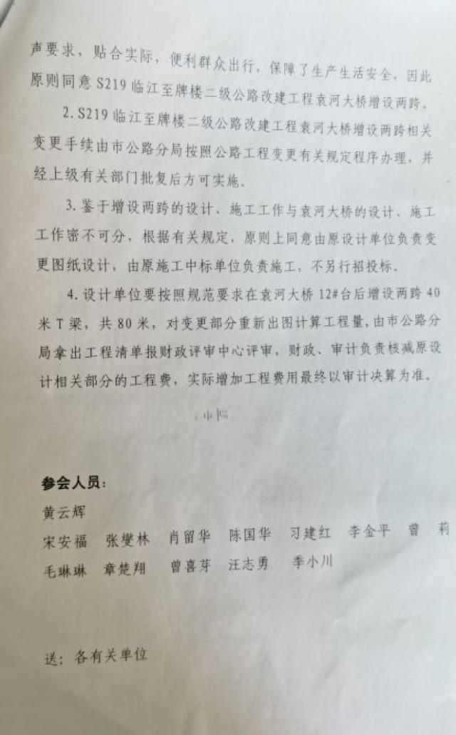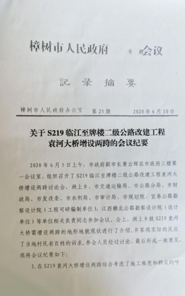 S219樟樹臨江至牌樓二級公路改建工程袁河大橋增設兩跨會議紀要