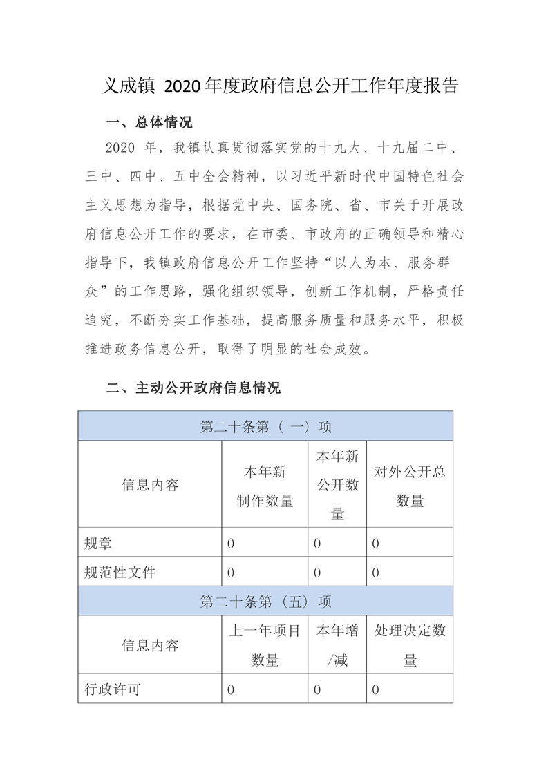 義成鎮2020年度政府信息公開工作年度報告