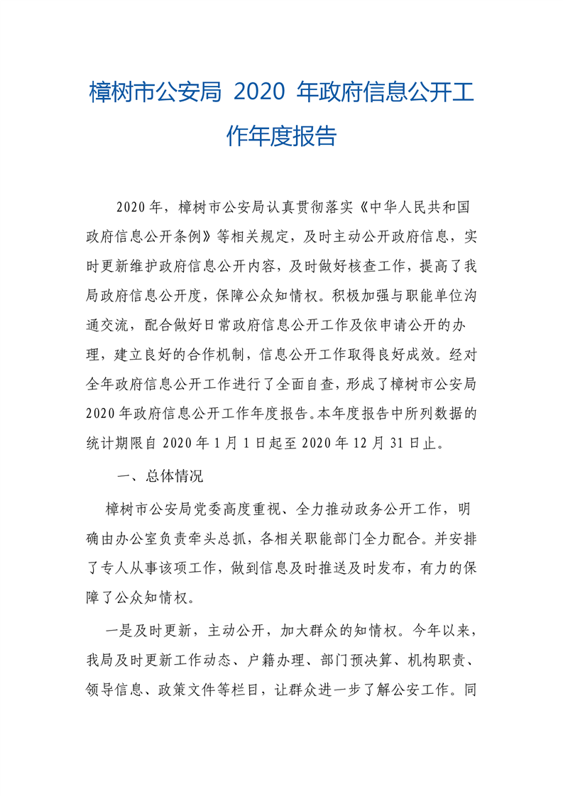 樟樹市公安局 2020 年政府信息公開工作年度報告.doc