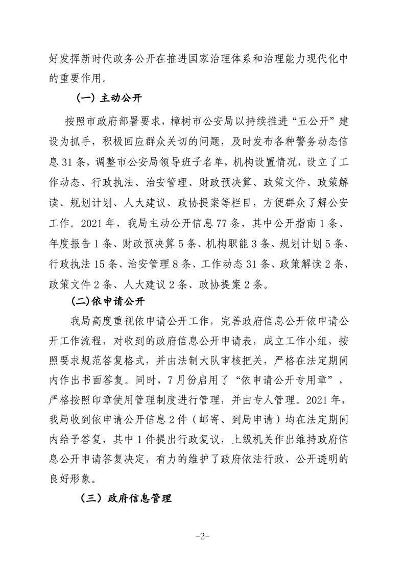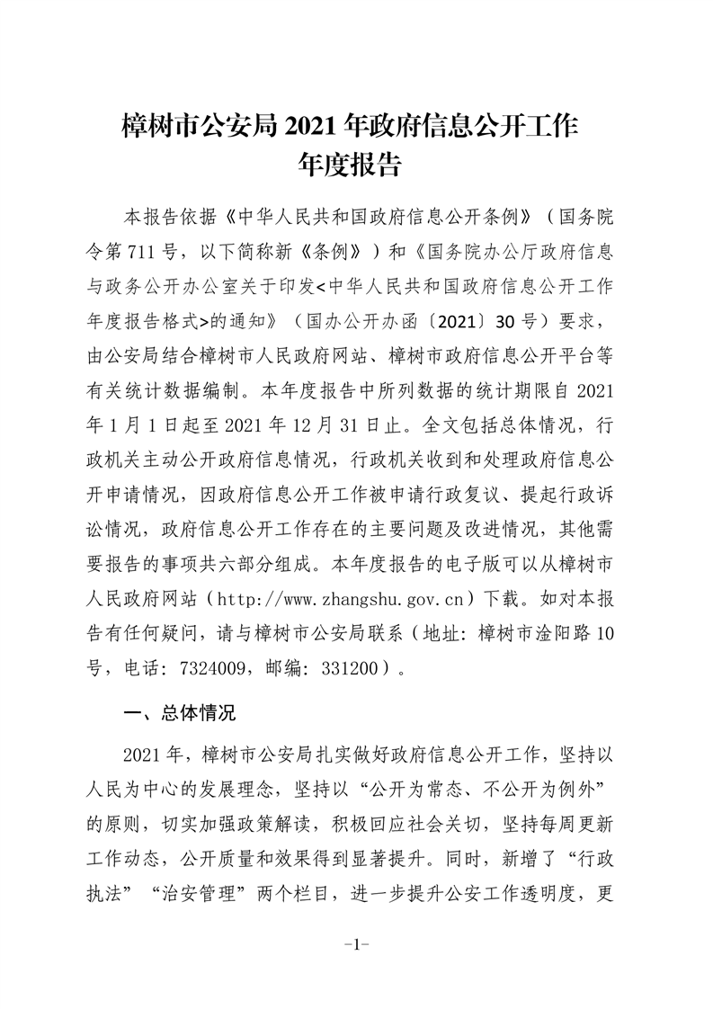 樟樹市公安局2021年政府信息公開工作年度報告