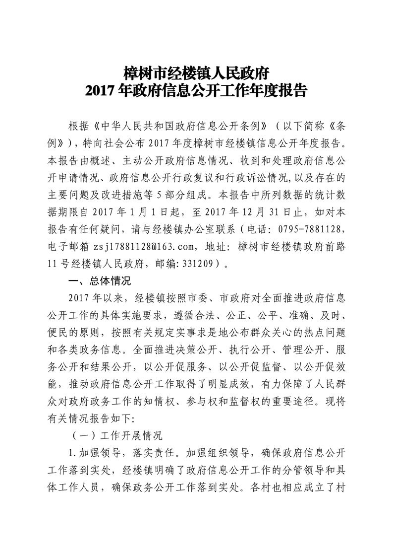 樟樹市經樓鎮人民政府2017年政府信息公開工作年度報告